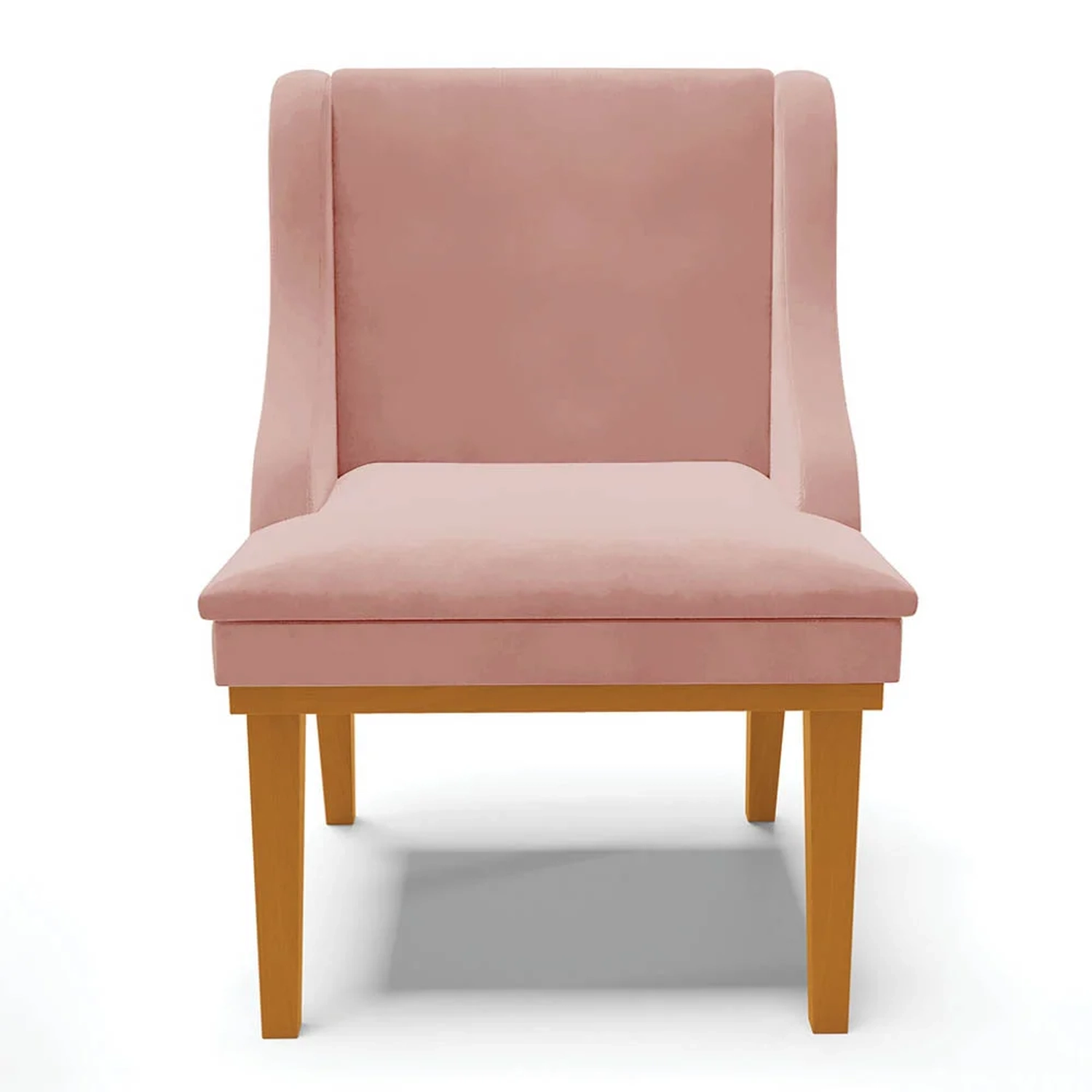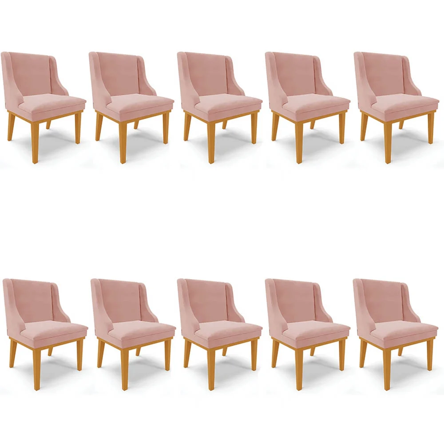 Para quem busca conforto, beleza e qualidade, vem conhecer o Kit 10 Cadeiras Estofadas para Sala de Jantar Base Fixa de Madeira Castanho Lia Veludo Rosê, da Ibiza!