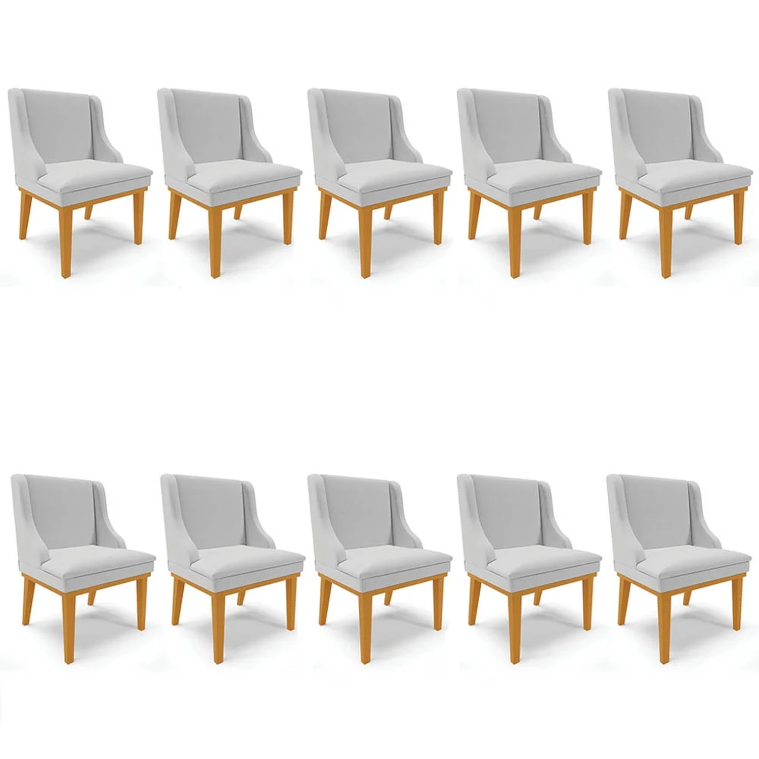 Que tal, unir conforto e beleza e deixar a sua casa mais bonita? Vem conhecer o Kit 10 Cadeiras Estofadas para Sala de Jantar Base Fixa de Madeira Castanho Lia Linho Cinza, que a Ibiza preparou especialmente para você!