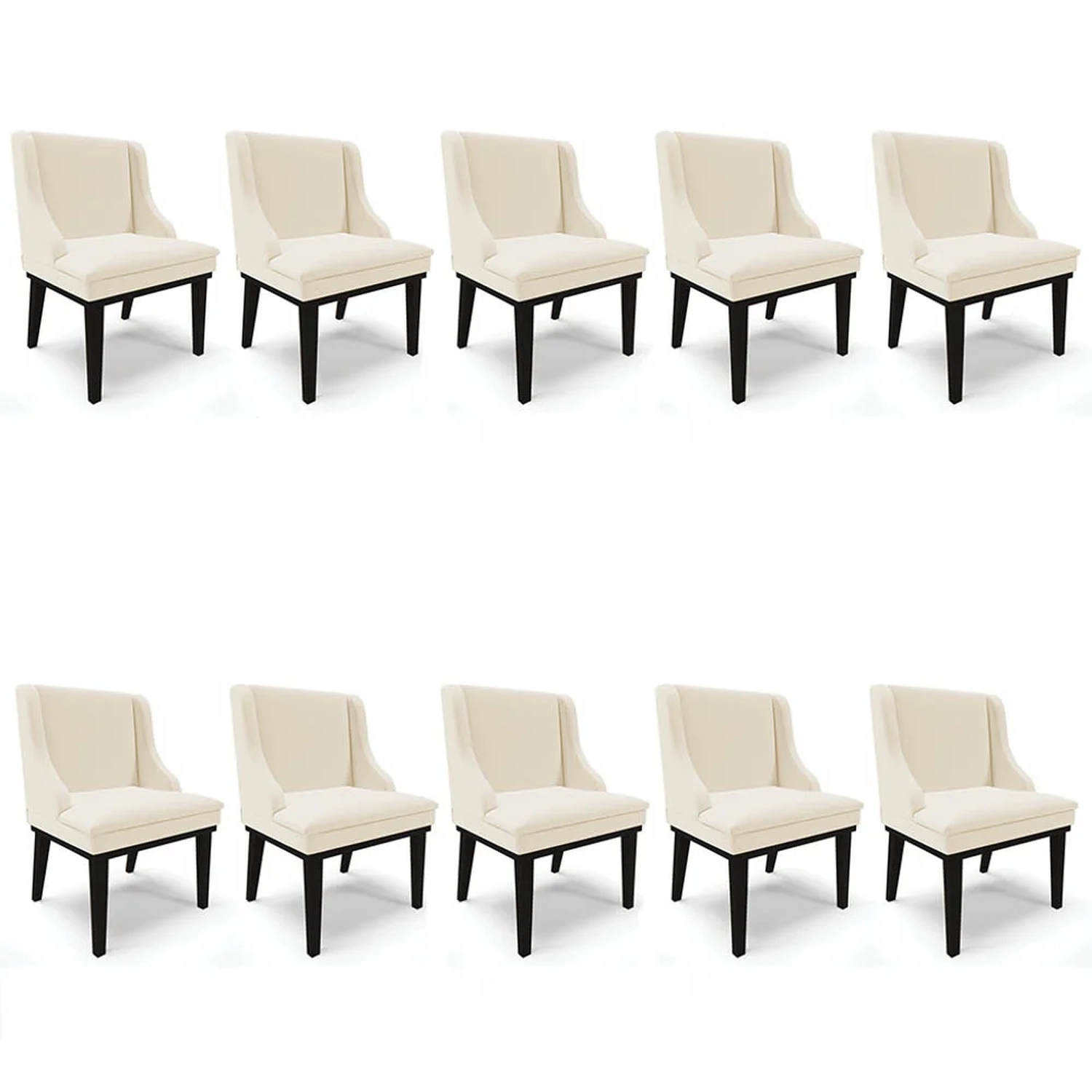 Sofisticação e conforto, são as palavras que definem o Kit 10 Cadeiras Estofadas para Sala de Jantar Base Fixa de Madeira Preto Lia Linho Bege, da Ibiza, confira!