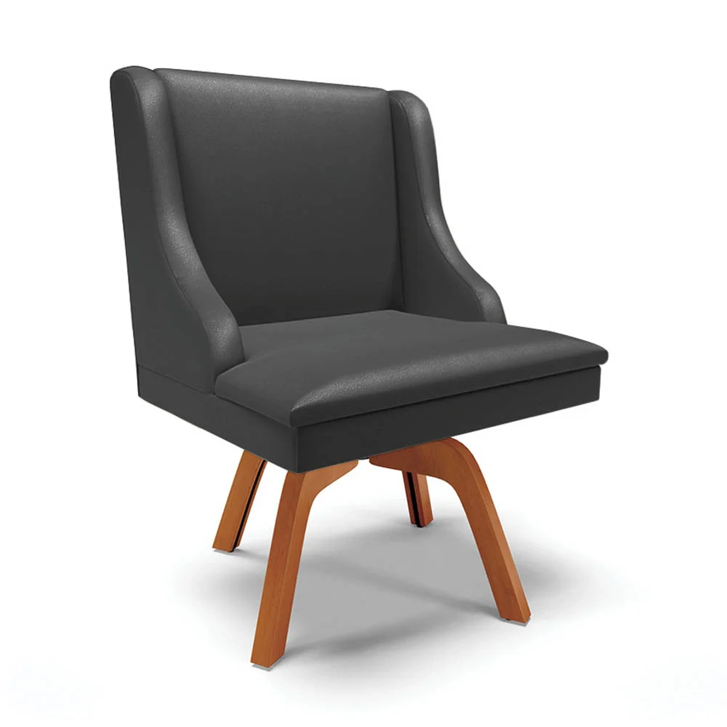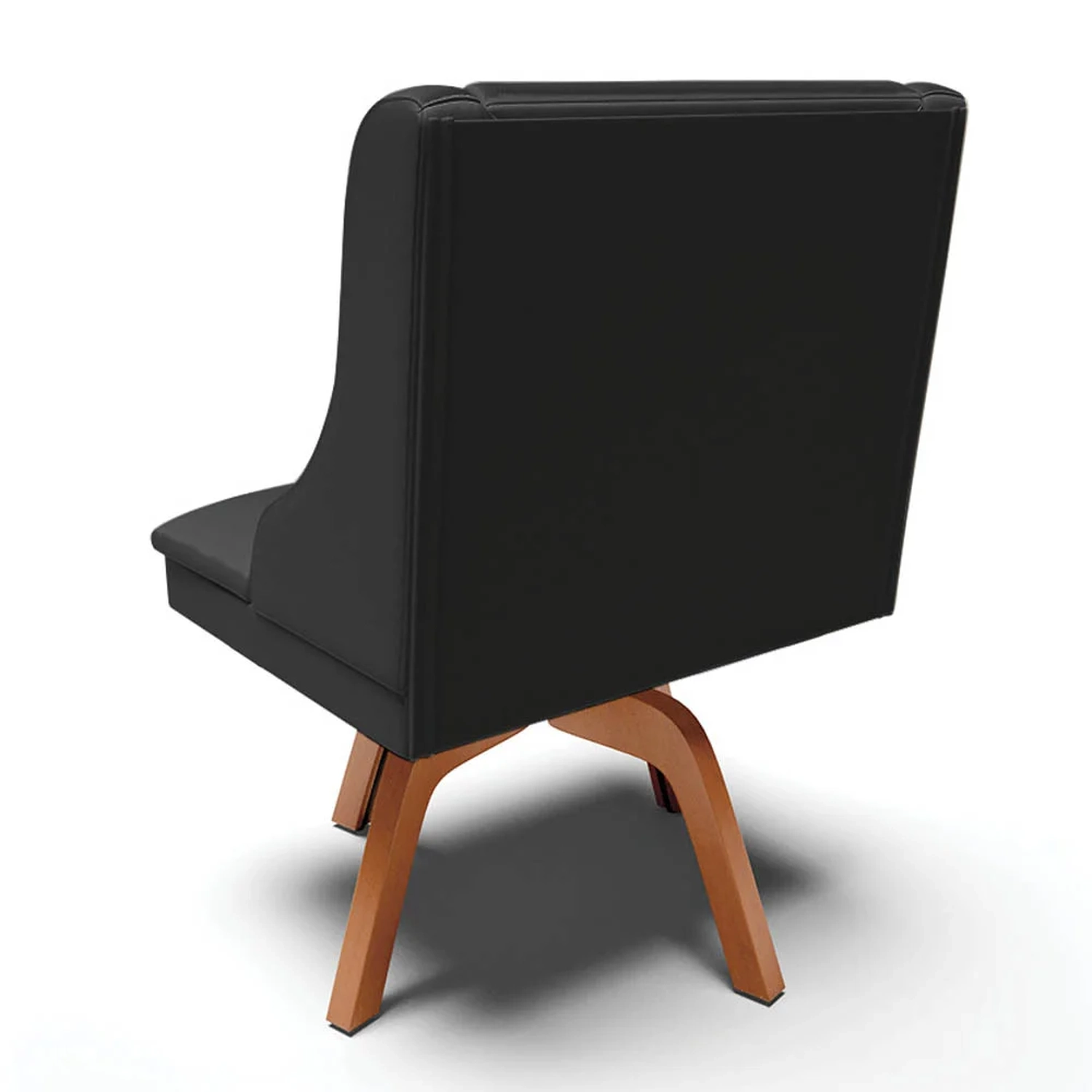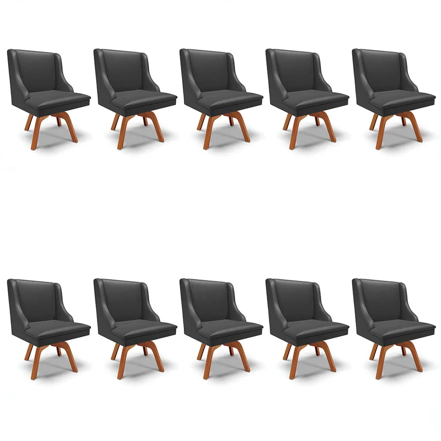 O Kit 10 Cadeiras Estofadas para Sala de Jantar Base Giratória de Madeira Lia Sintético Preto, da Ibiza é perfeito para acomodar a família toda, confira!