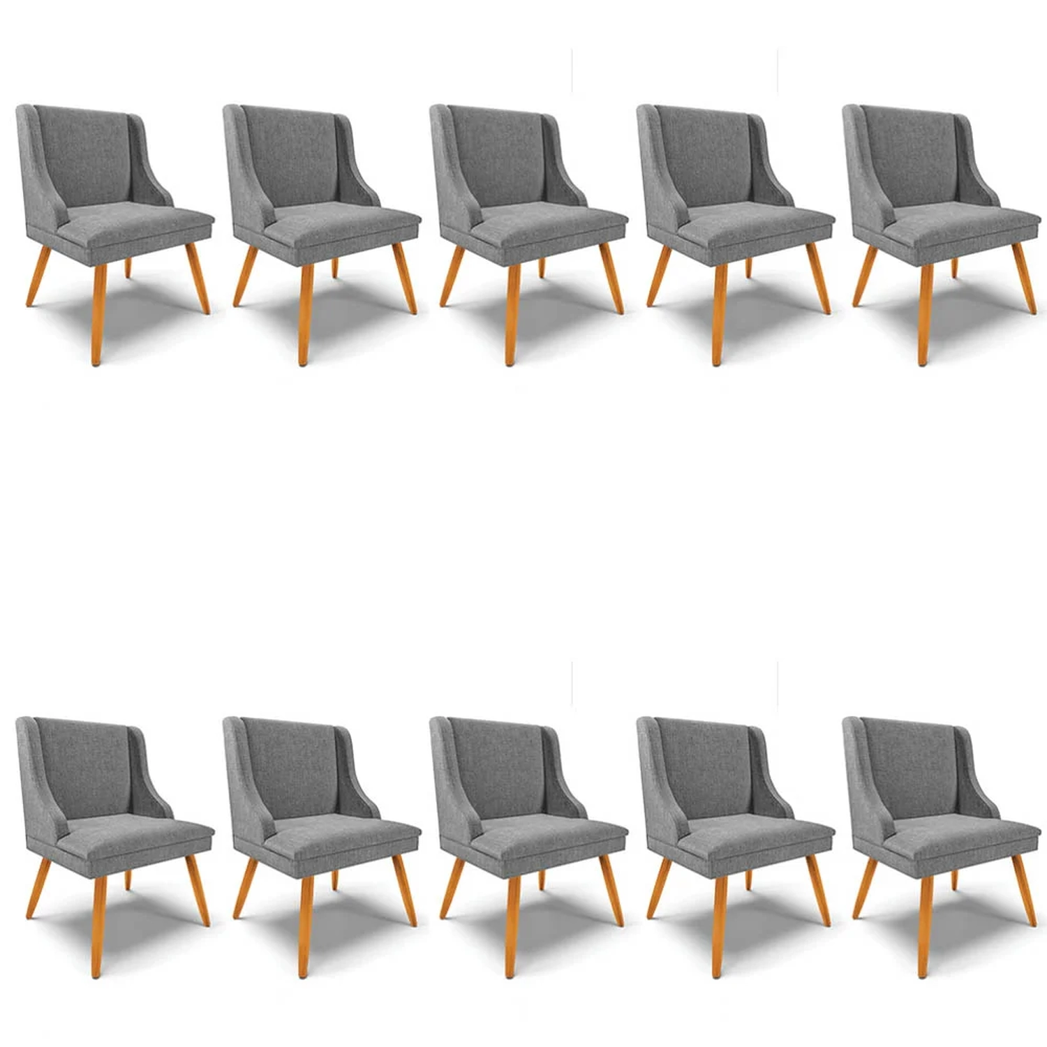 Se você não abre mão de qualidade, conforto e estilo, vem conhecer o Kit 10 Cadeiras Estofadas para Sala de Jantar Pés Palito Lia Linho Grafite, da Ibiza e encante-se!