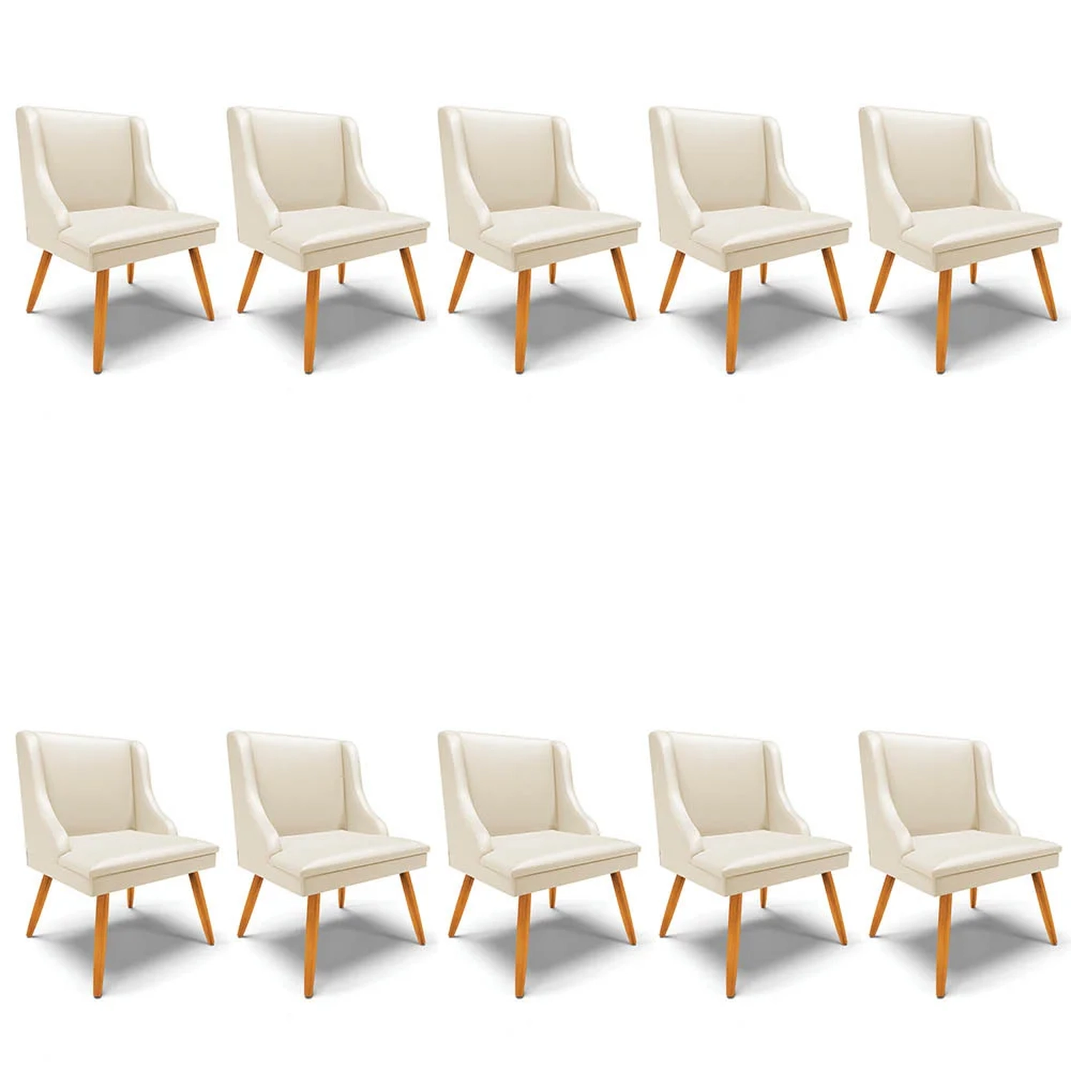 Ideal para adicionar conforto e sofisticação ao cômodo, o Kit 10 Cadeiras Estofadas para Sala de Jantar Pés Palito Lia Sintético Bege, da Ibiza, é a opção perfeita para acomodar a família toda! Confira!
