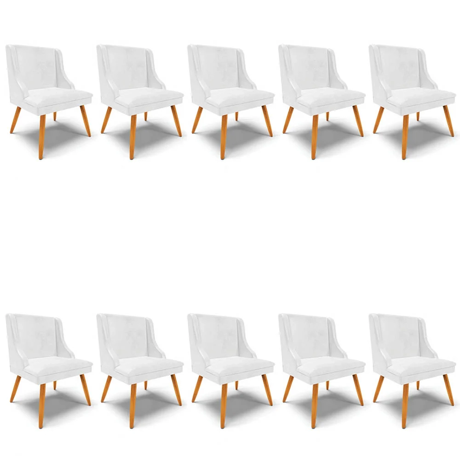 Deixe a sua casa mais bonita e sofisticada! Confira o Kit 10 Cadeiras Estofadas para Sala de Jantar Pés Palito Lia Sintético Premium Branco, da Ibiza e transforme a decoração do ambiente!