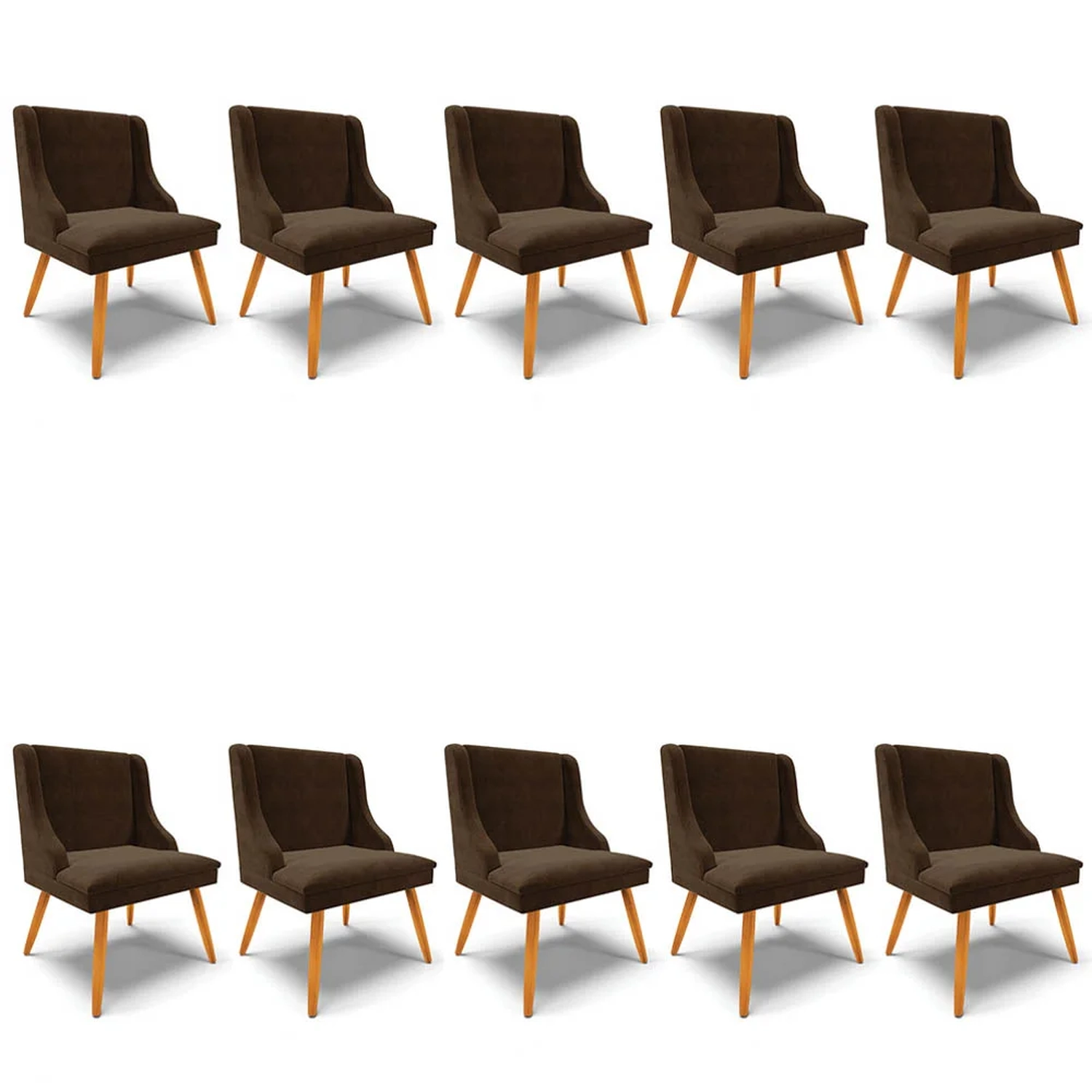 Unindo conforto e estilo, a Ibiza desenvolveu o Kit 10 Cadeiras Estofadas para Sala de Jantar Pés Palito Lia Suede Marrom para te surpreender, confira os detalhes!
