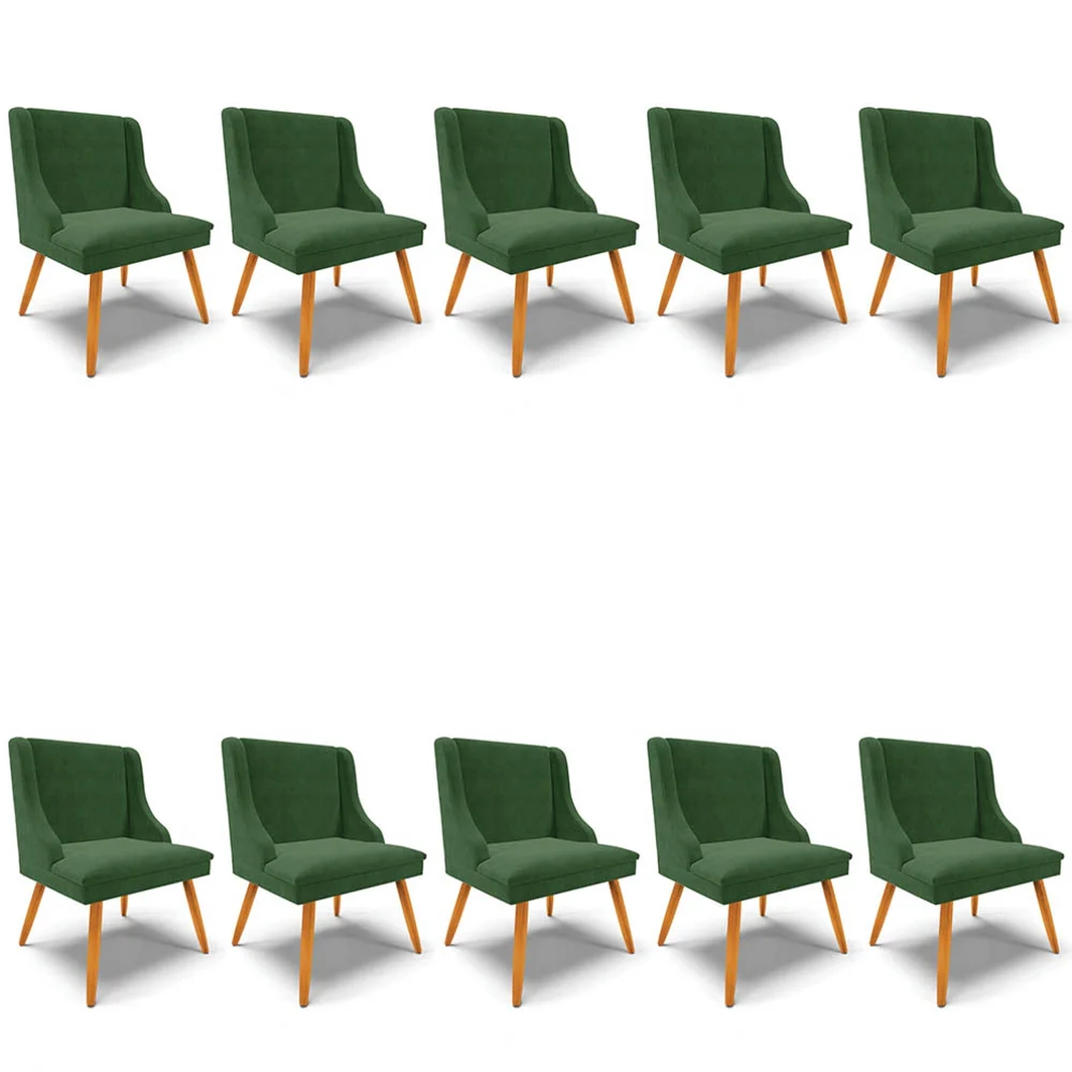 Unindo conforto e estilo, a Ibiza desenvolveu o Kit 10 Cadeiras Estofadas para Sala de Jantar Pés Palito Lia Suede Verde para te surpreender, confira os detalhes!