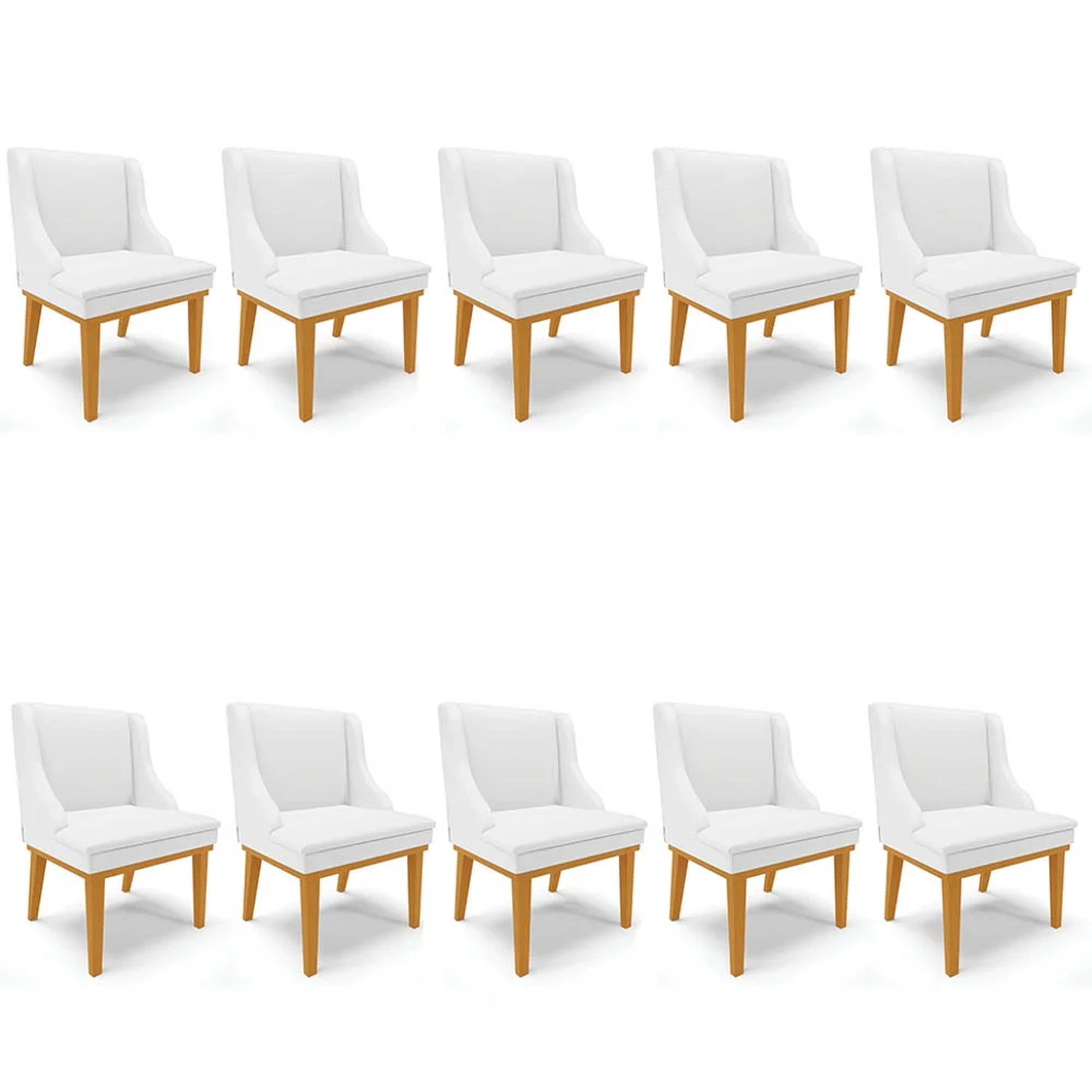 Com o Kit 10 Cadeiras Estofadas Sala de Jantar Base Fixa de Madeira Castanho Lia Sintético Branco, da Ibiza, você tem beleza e conforto, sem abrir mão da qualidade! Confira os detalhes!