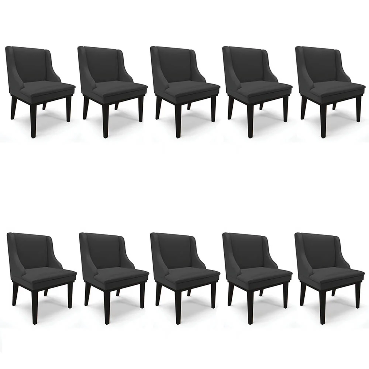 Beleza e elegância, são os atributos do Kit 10 Cadeiras Estofadas Sala de Jantar Base Fixa de Madeira Preto Lia Sintético Preto, da Ibiza, vem conhecer os detalhes!