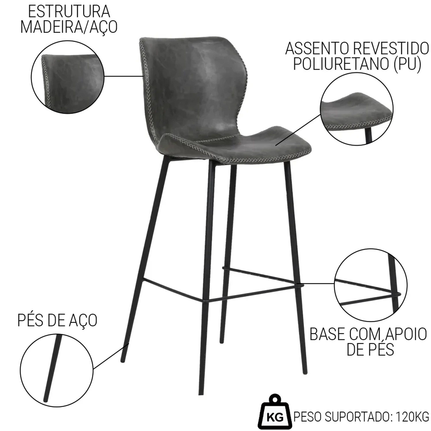 - Banqueta para diversos ambientes: cozinha, bancada, área gourmet, bistrô.