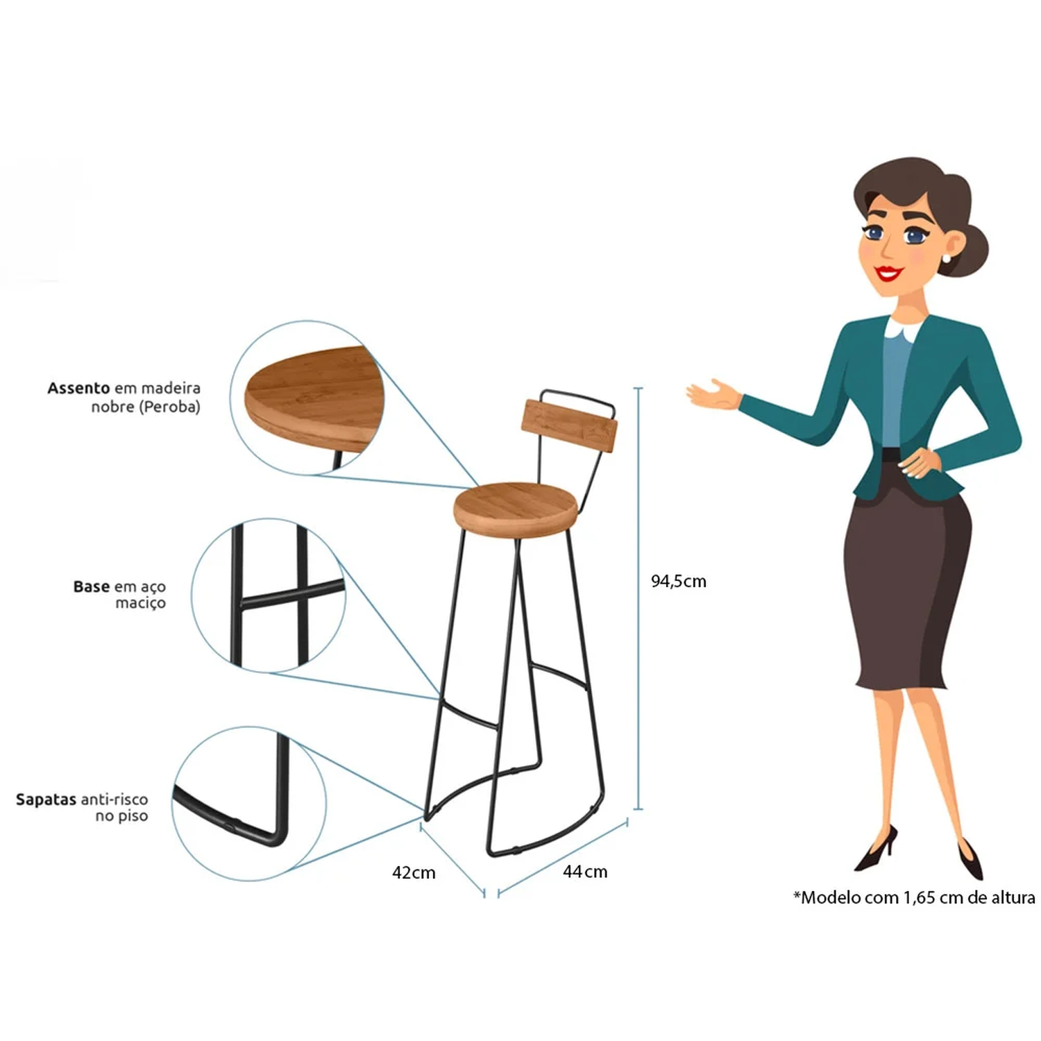 Estilosas, funcionais e versáteis o Kit 2 Banquetas Altas com Encosto para Cozinha Estilo Industrial Aura D09 Peroba, da Mpozenato vai dar um toque de modernidade na sua casa, confira os detalhes!