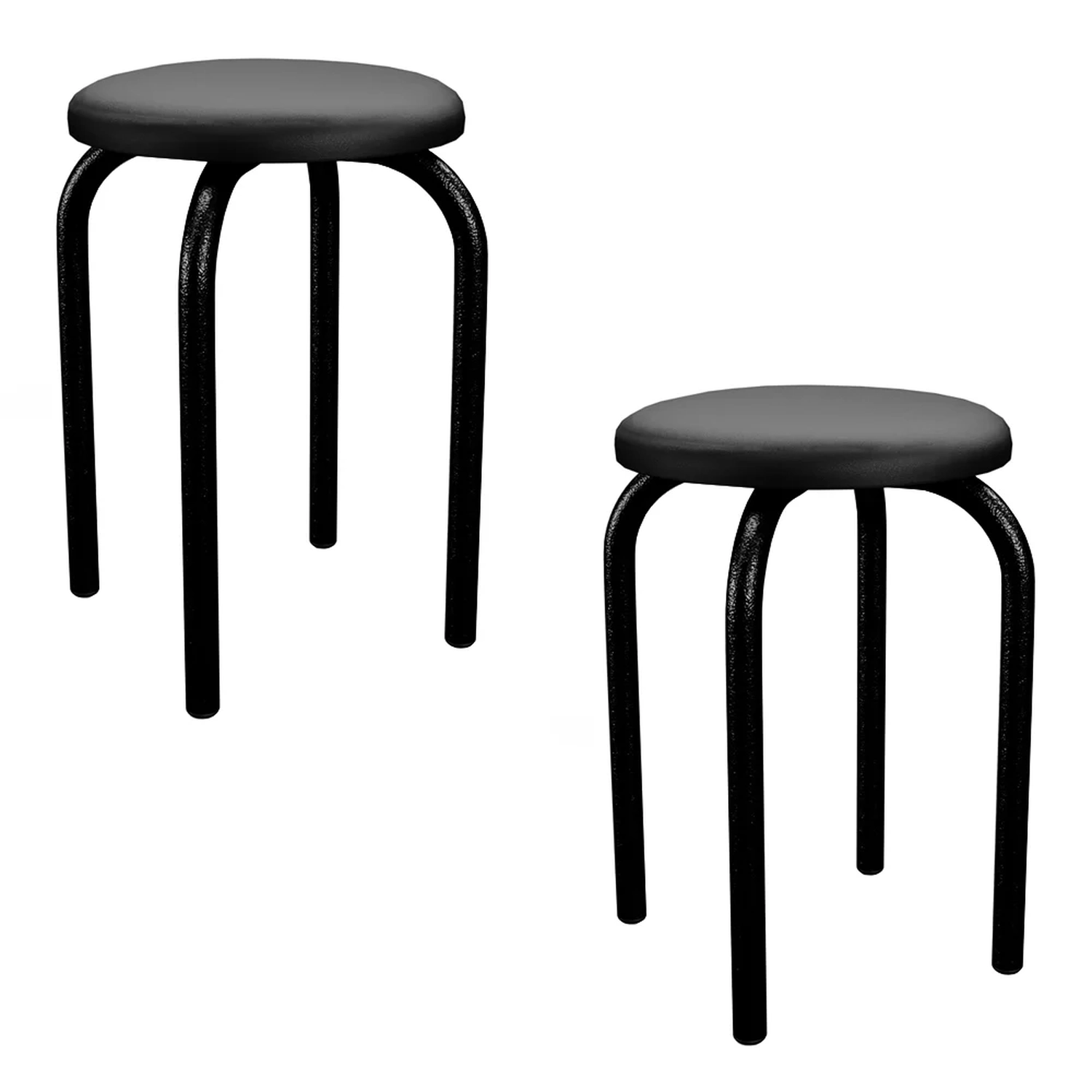 Esse kit é essencial e você vai se encantar com a praticidade. Conheça o Kit 2 Banquetas Baixas Empilháveis em Aço Maviê Sintético Preto, da Mpozenato!