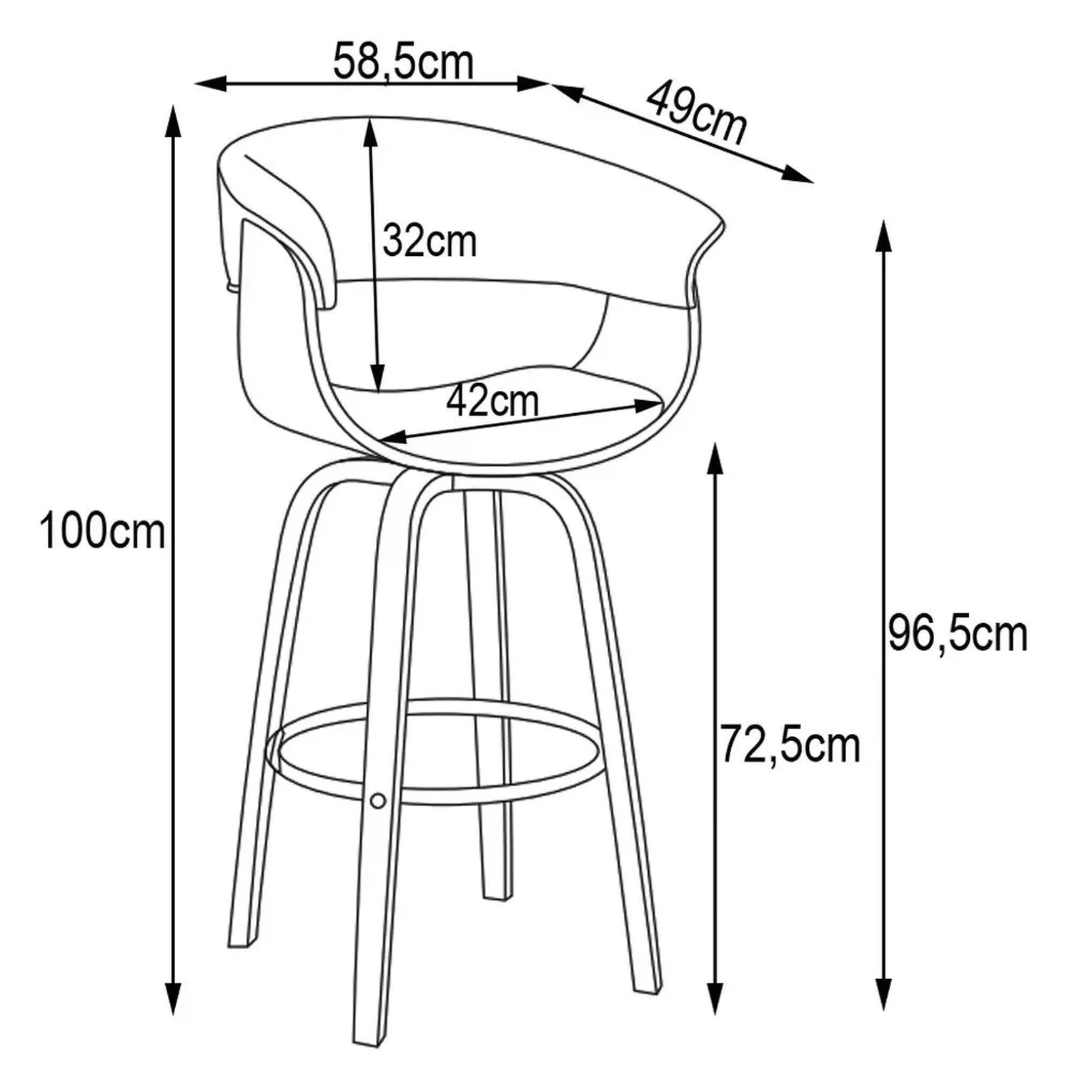 - Banqueta para diversos ambientes: cozinha, bancada, área gourmet, bistrô.
