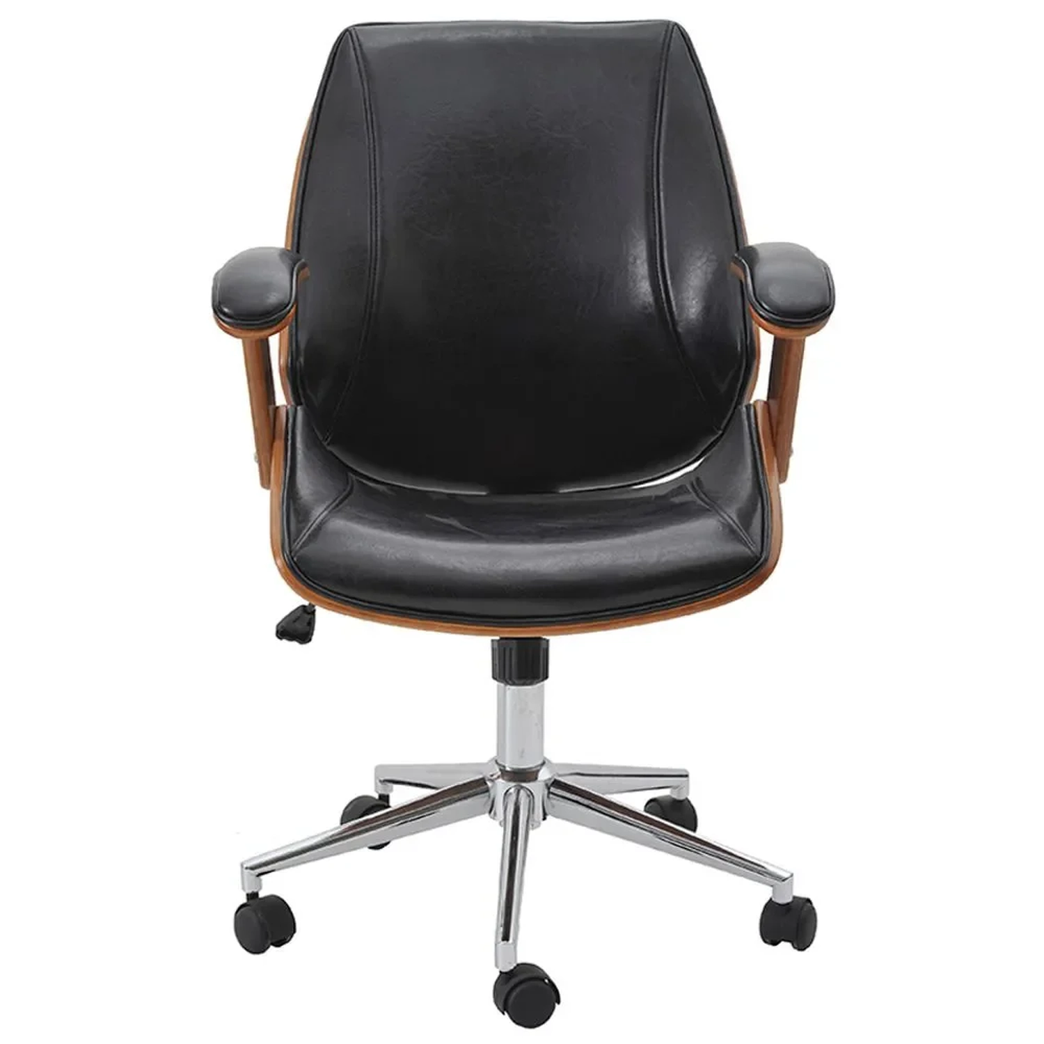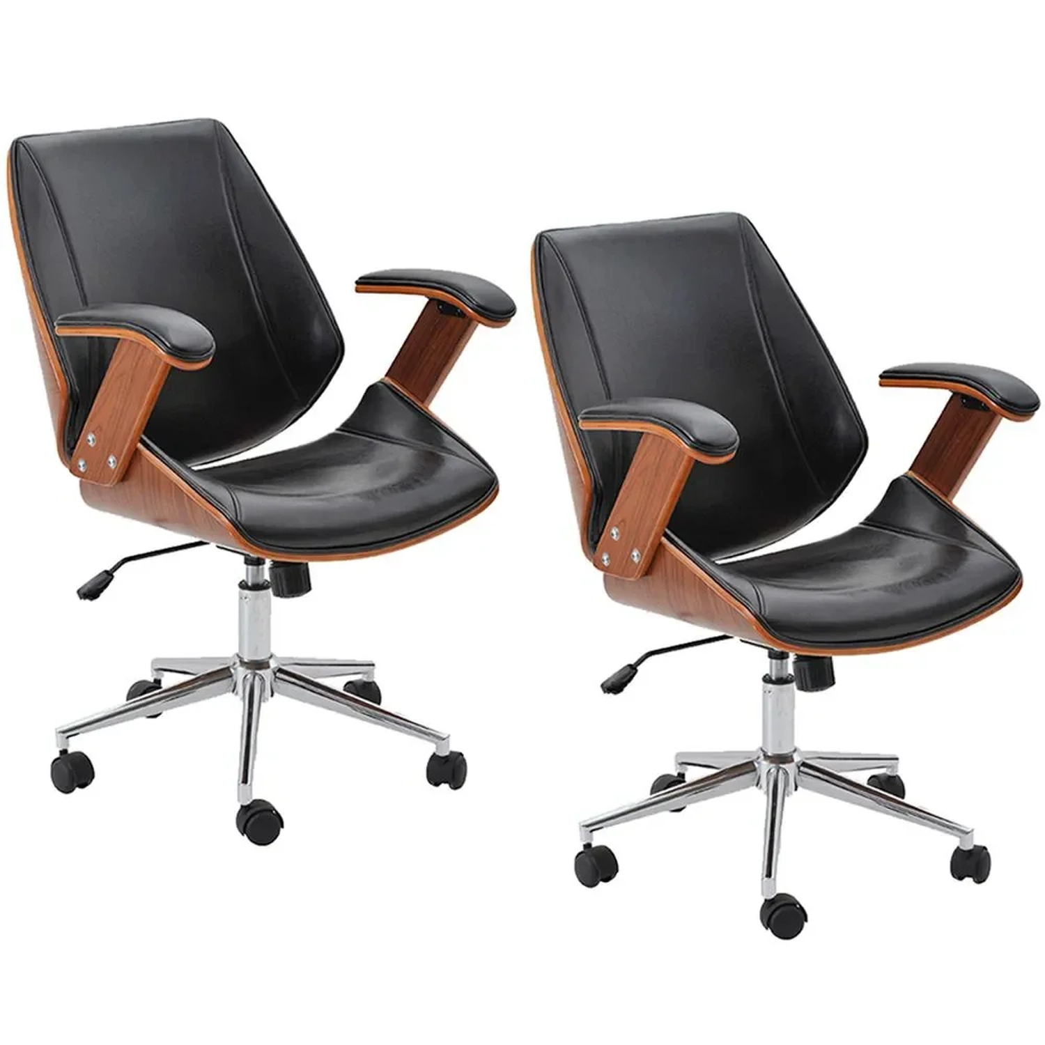 As longas horas em sua mesa de trabalho fazem com que você se sinta esgotado e desconfortável? Diga adeus ao desconforto e olá à produtividade com o Kit 2 Cadeiras de Escritório Diretor Giratória Liziê R02 Madeira PU Marrom/Preto, da Mpozenato. Projetada tendo o conforto em mente, essa cadeira diretor é um verdadeiro divisor de águas na sua rotina laboral no escritório ou home office.