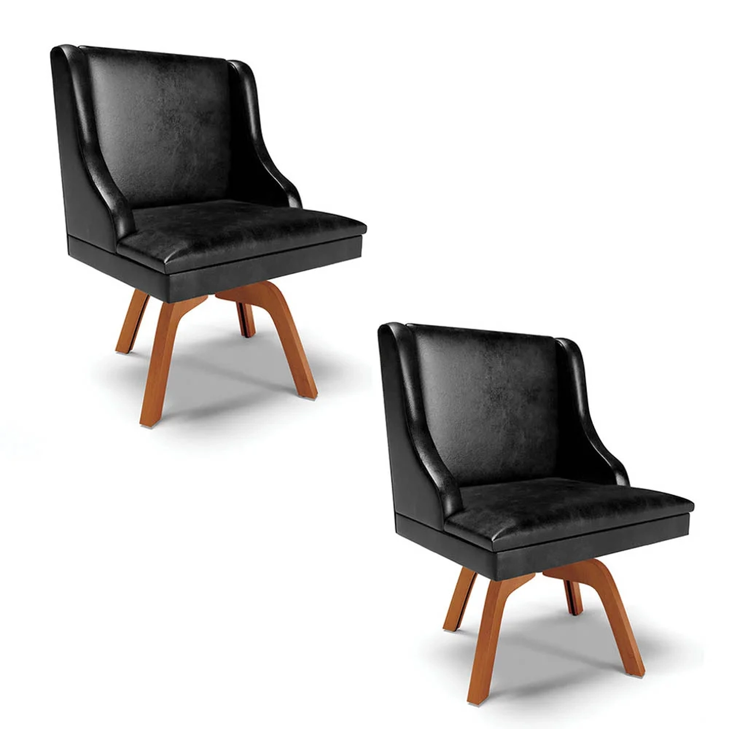 Investir em um Kit 2 Cadeiras Estofadas Base Giratória de Madeira Lia Sintético Premium Preto, da Ibiza, é indispensável para uma casa linda e aconchegante, confira!