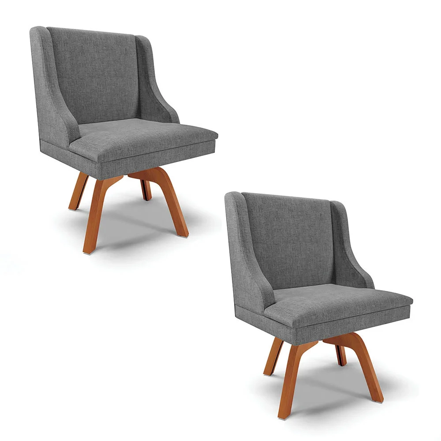 Ideal para adicionar modernidade e sofisticação ao ambiente, o Kit 2 Cadeiras Estofadas Giratória para Sala de Jantar Lia Linho Grafite, da Ibiza é uma ótima opção para compor a decoração da sua casa, confira os detalhes!