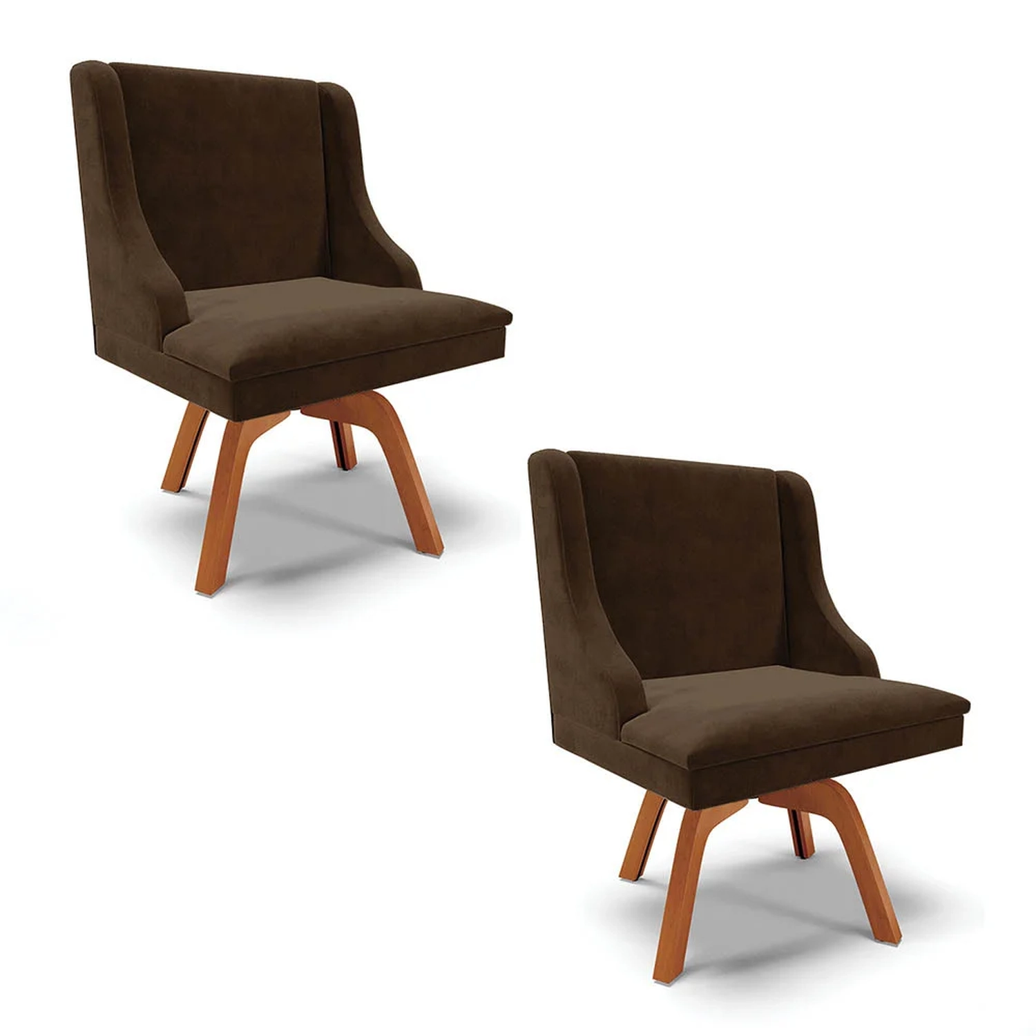 Para quem não abre mão de conforto e qualidade, o Kit 2 Cadeiras Estofadas Giratória para Sala de Jantar Lia Suede Marrom, da Ibiza, é perfeito para você! Conheça os detalhes!