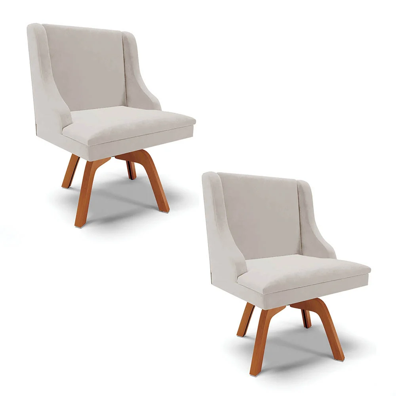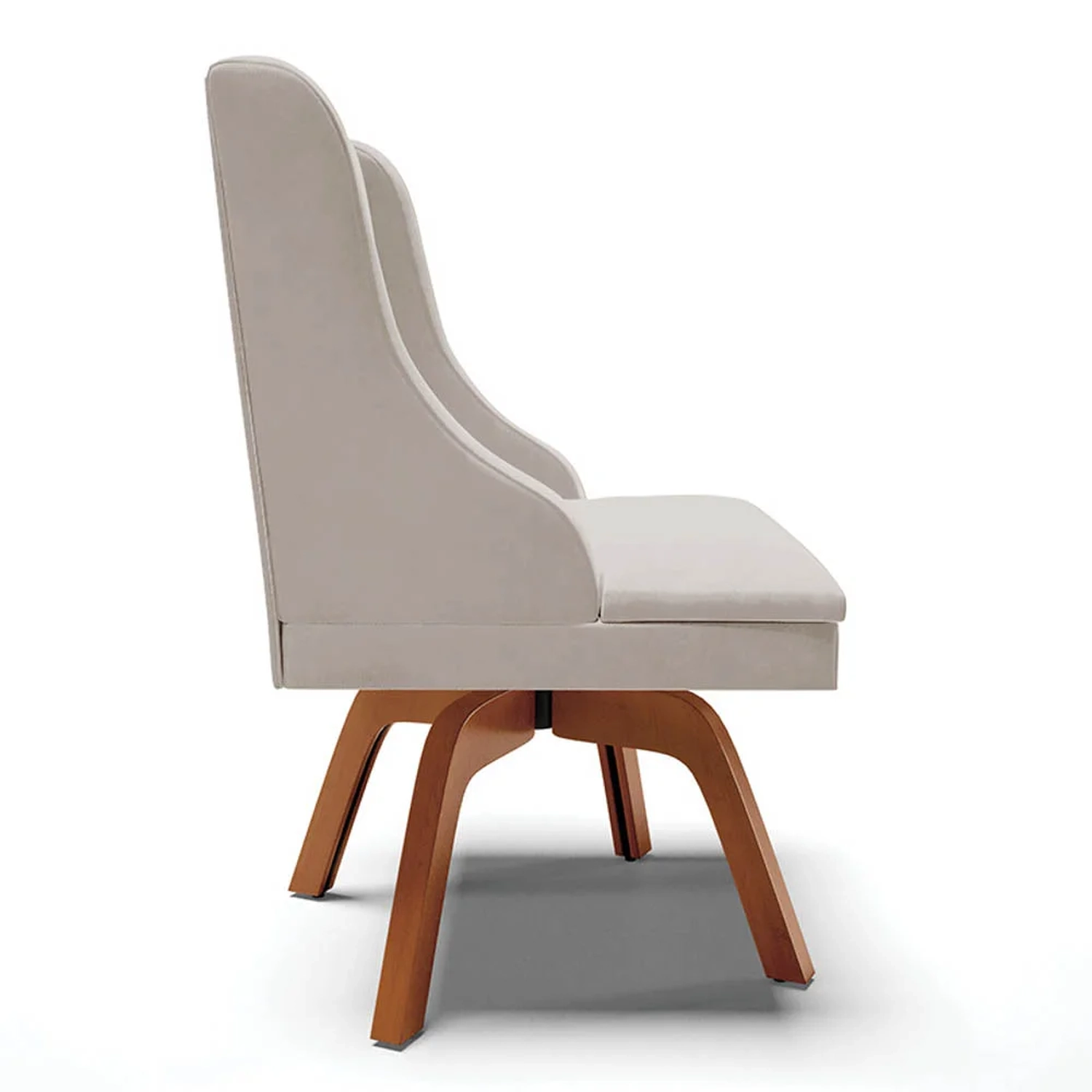 A Cadeira Estofada Lia possui design elegante e é ideal para quem busca aconchego e sofisticação na hora das refeições. A Base Giratória de Madeira é resistente e permite que se movimente com facilidade e ainda suporta até 120kg! Além disso, a Cadeira Estofada é produzida com Madeira Eucalipto de reflorestamento, ecologicamente correta e o estofado é composto em espuma macia D-23 e revestido em Veludo, tecido clássico, elegante, macio, agradável ao toque, além de resistente e durável é versátil e combina com vários estilos de decoração!