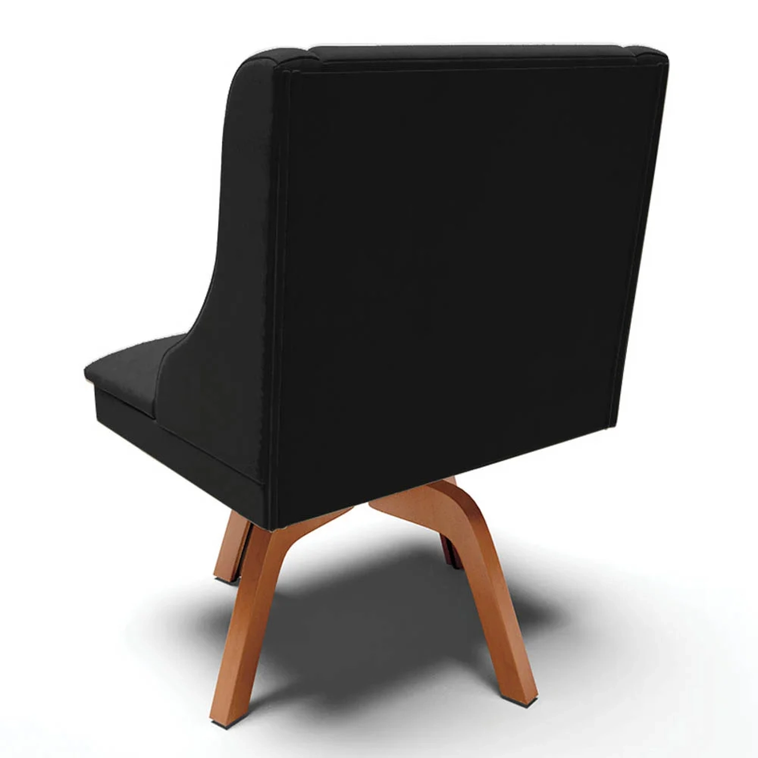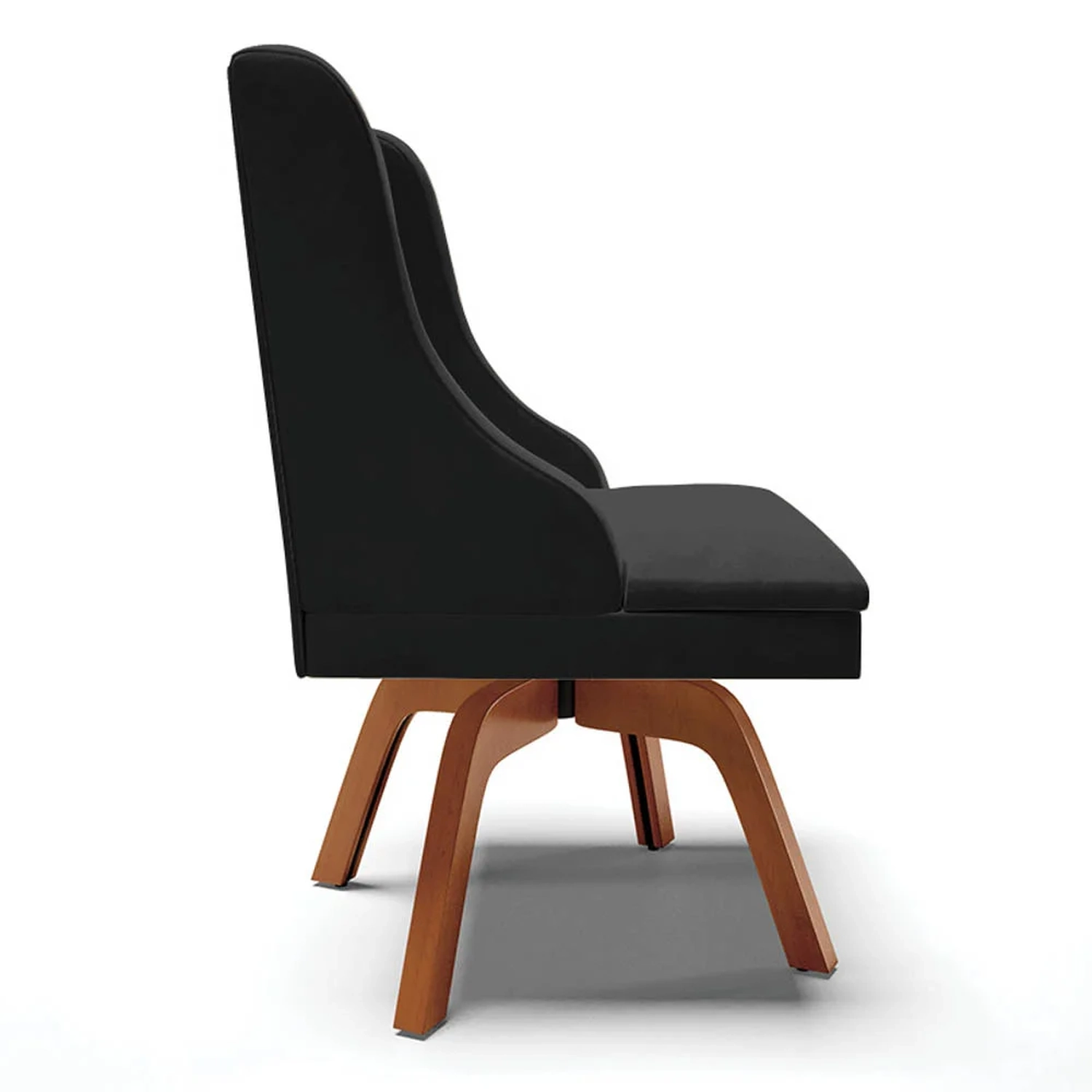 A Cadeira Estofada Lia possui design elegante e é ideal para quem busca aconchego e sofisticação na hora das refeições. A Base Giratória de Madeira é resistente e permite que se movimente com facilidade e ainda suporta até 120kg! Além disso, a Cadeira Estofada é produzida com Madeira Eucalipto de reflorestamento, ecologicamente correta e o estofado é composto em espuma macia D-23 e revestido em Veludo, tecido clássico, elegante, macio, agradável ao toque, além de resistente e durável é versátil e combina com vários estilos de decoração!