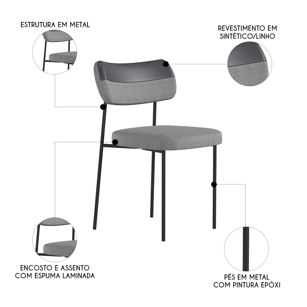 Material do Assento: Linho.