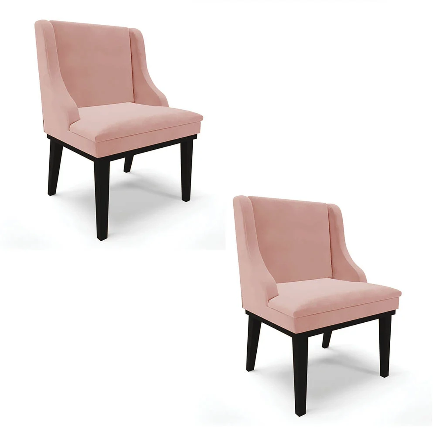 O Kit 2 Cadeiras Estofadas para Sala de Jantar Base Fixa de Madeira Preto Lia Veludo Rosê, da Ibiza é o que você precisa para deixar sua casa moderna e elegante, confira!