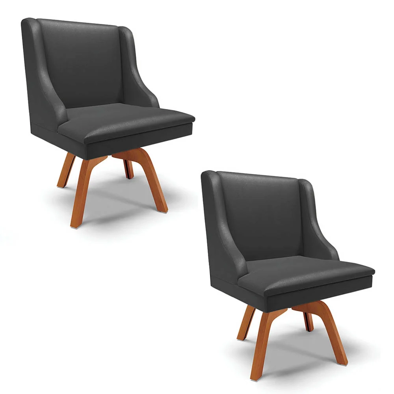 O Kit 2 Cadeiras Estofadas para Sala de Jantar Base Giratória de Madeira Lia Sintético Preto, da Ibiza, é perfeito para quem não abre mão do conforto, beleza e qualidade, vem conhecer!
