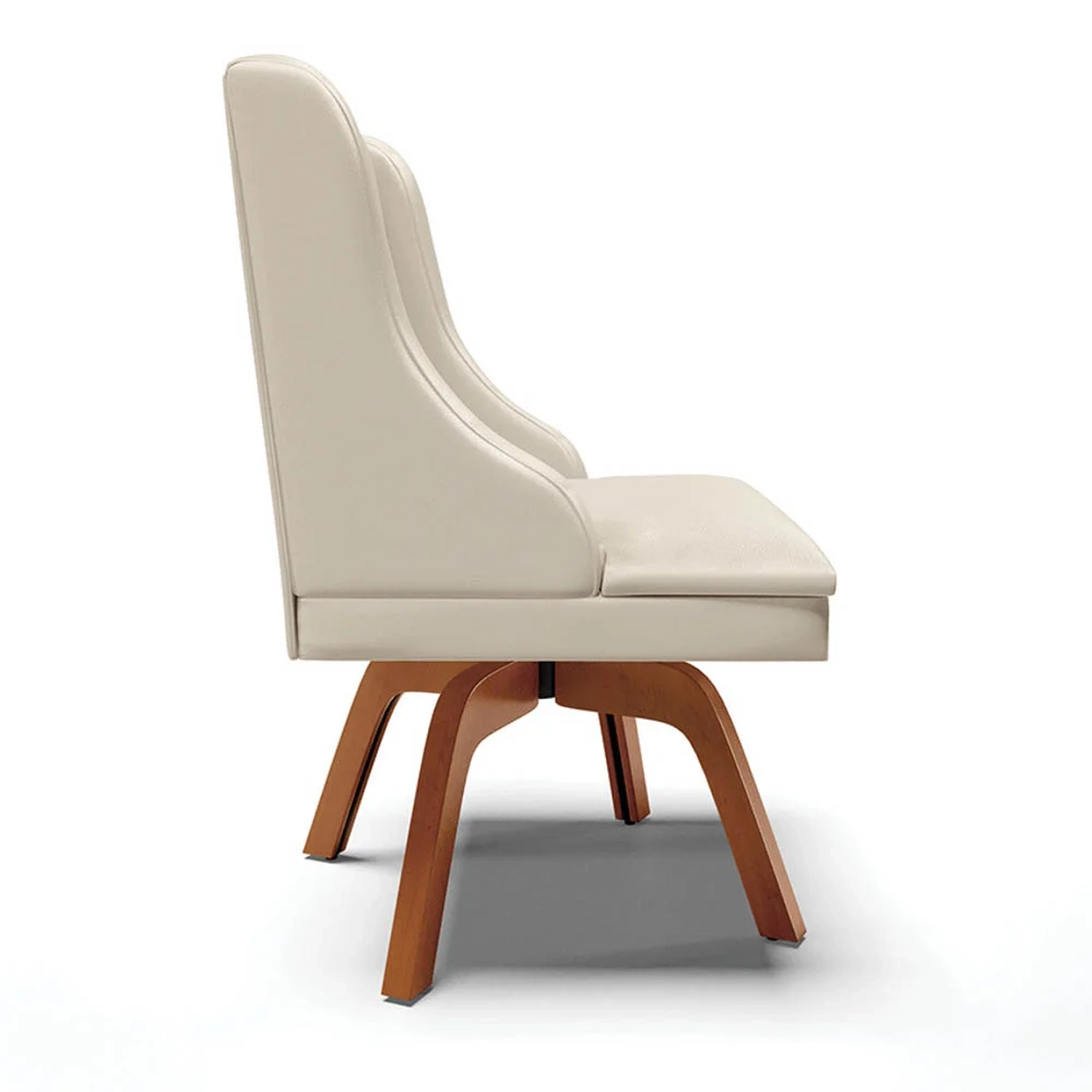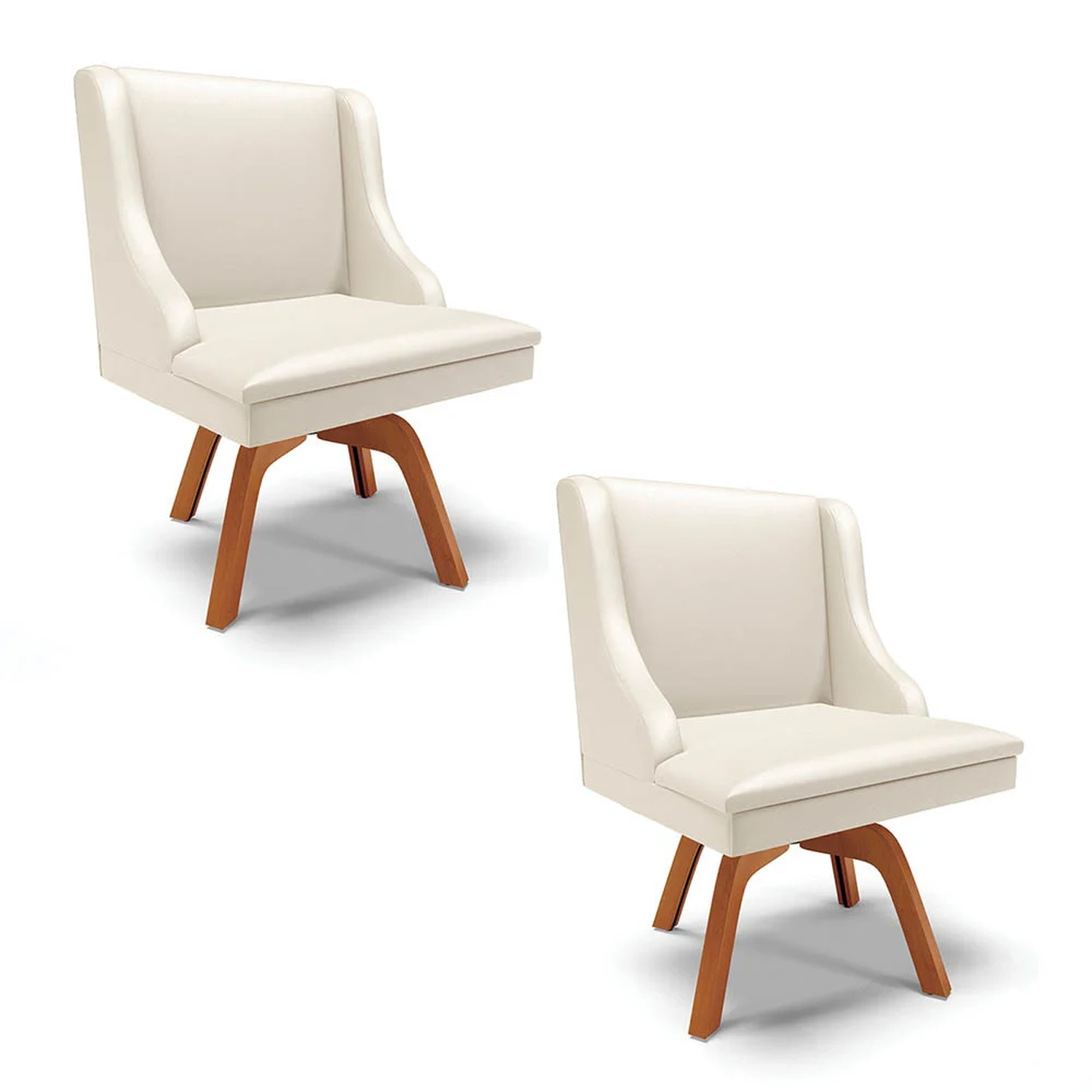 O Kit 2 Cadeiras Estofadas para Sala de Jantar Base Giratória de Madeira Lia Sintético Bege, da Ibiza, é perfeito para quem não abre mão do conforto, beleza e qualidade, vem conhecer!