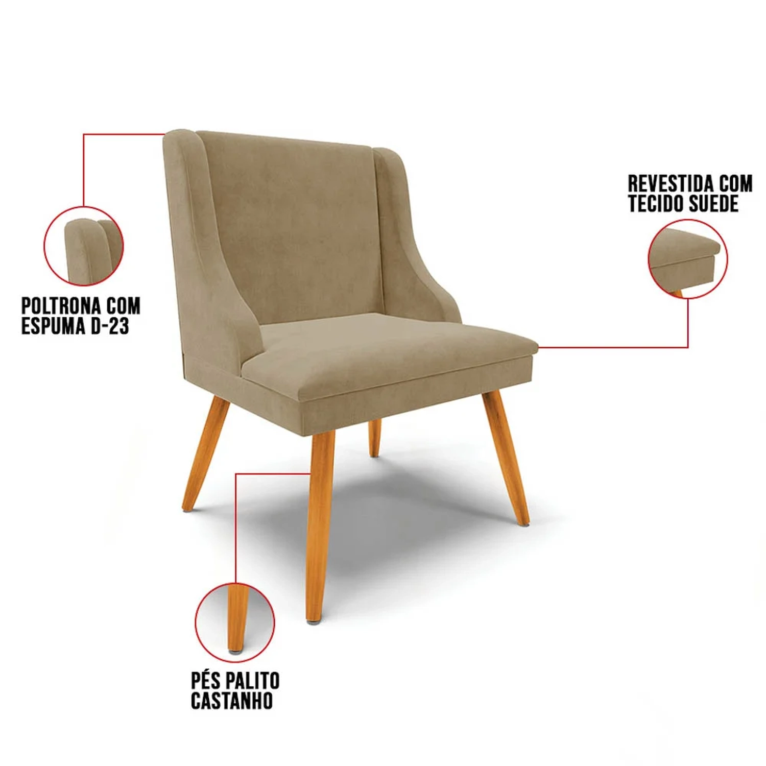 Além de combinar com vários estilos de decoração, a Cadeira Estofada com Pés Palito vem ganhando o coração das casas brasileiras, deixando-as mais charmosas com um leve toque retrô! Pensando nisso, a Cadeira Estofada Lia foi projetada para dar um toque elegante e clean na decoração desde a Sala de Jantar, Sala de Estar, Varanda até Área Gourmet, tornando o ambiente especial para reunir a família e os amigos garantindo momentos memoráveis! O móvel é produzido com madeira de eucalipto de reflorestamento, ecologicamente correto, conferindo qualidade, segurança e resistência! A parte estofada é composta por espuma macia densidade D-23 e tecido Suede agradável ao toque, macio, aconchegante e altamente resistente.