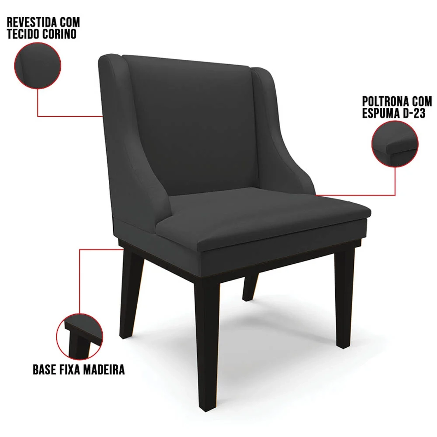 Os melhores momentos que passamos com a nossa família e amigos são ao redor da mesa durante as refeições, por isso, a escolha da Cadeira é tão importante. Além de compor a decoração do ambiente, ela precisa ser confortável e resistente, assim como a Cadeira Estofada Lia que suporta até 120 kg, produzida em madeira de eucalipto proveniente de reflorestamento e base fixa em madeira, que agrega qualidade e durabilidade ao produto. Todo o conforto vem da espuma de densidade D-23 e do revestimento do assento e do encosto. O tecido que reveste esse lindo móvel é Sintético de alta qualidade, impermeável, de fácil limpeza e não mancha facilmente, ideal para quem tem crianças e/ou animais domésticos em casa!