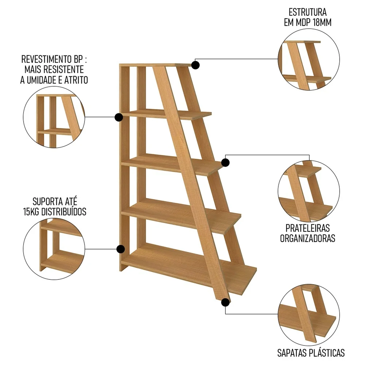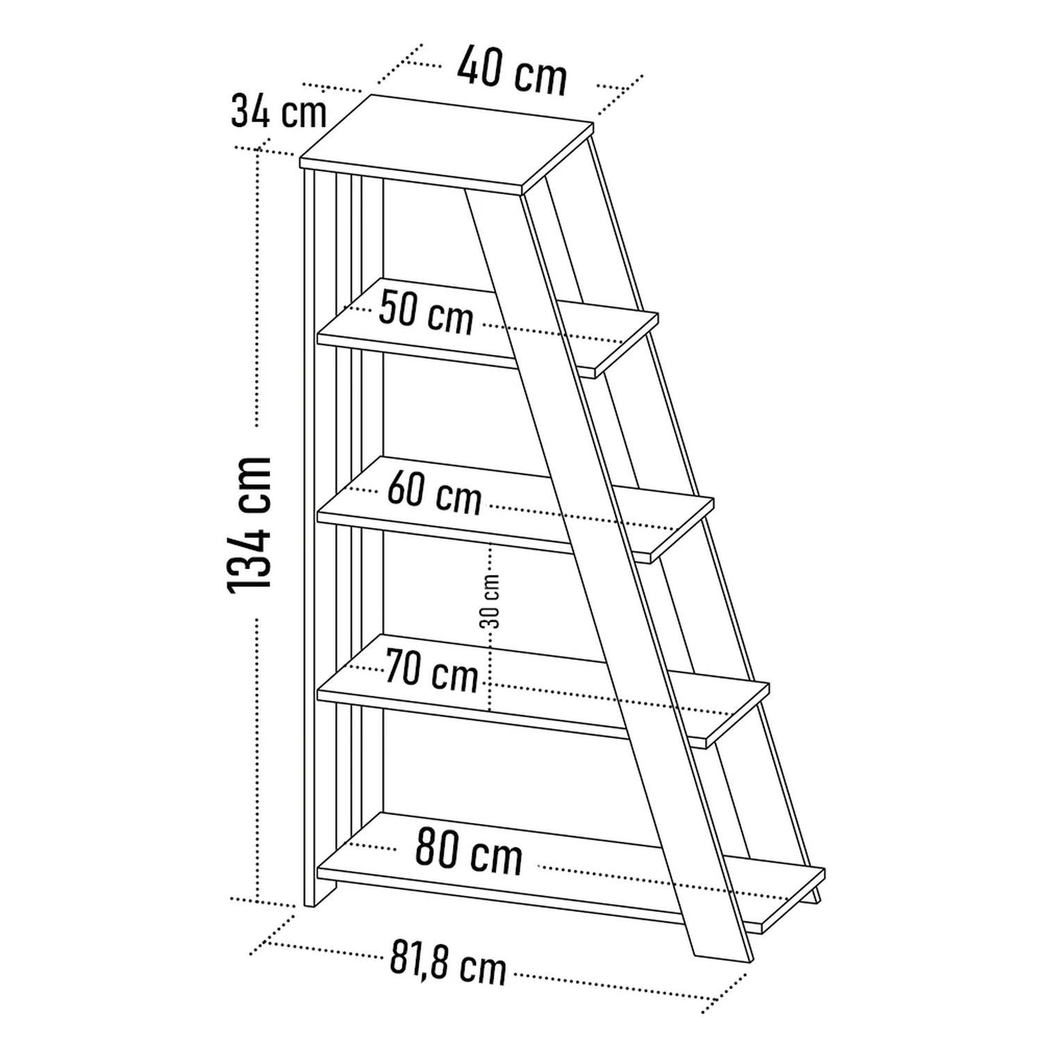 Com seu design de modelo escada, essa estante livreiro não apenas oferece uma solução prática de armazenamento, como também serve como uma peça decorativa elegante em qualquer ambiente. As cinco prateleiras proporcionam amplo espaço para exibir livros, fotos e outros itens de sua preferência, tornando-a ideal para sala de estar, home office e quarto. Seja você um amante de design ou alguém que busca por funcionalidade, o livreiro multiuso Stela é a melhor escolha para você.