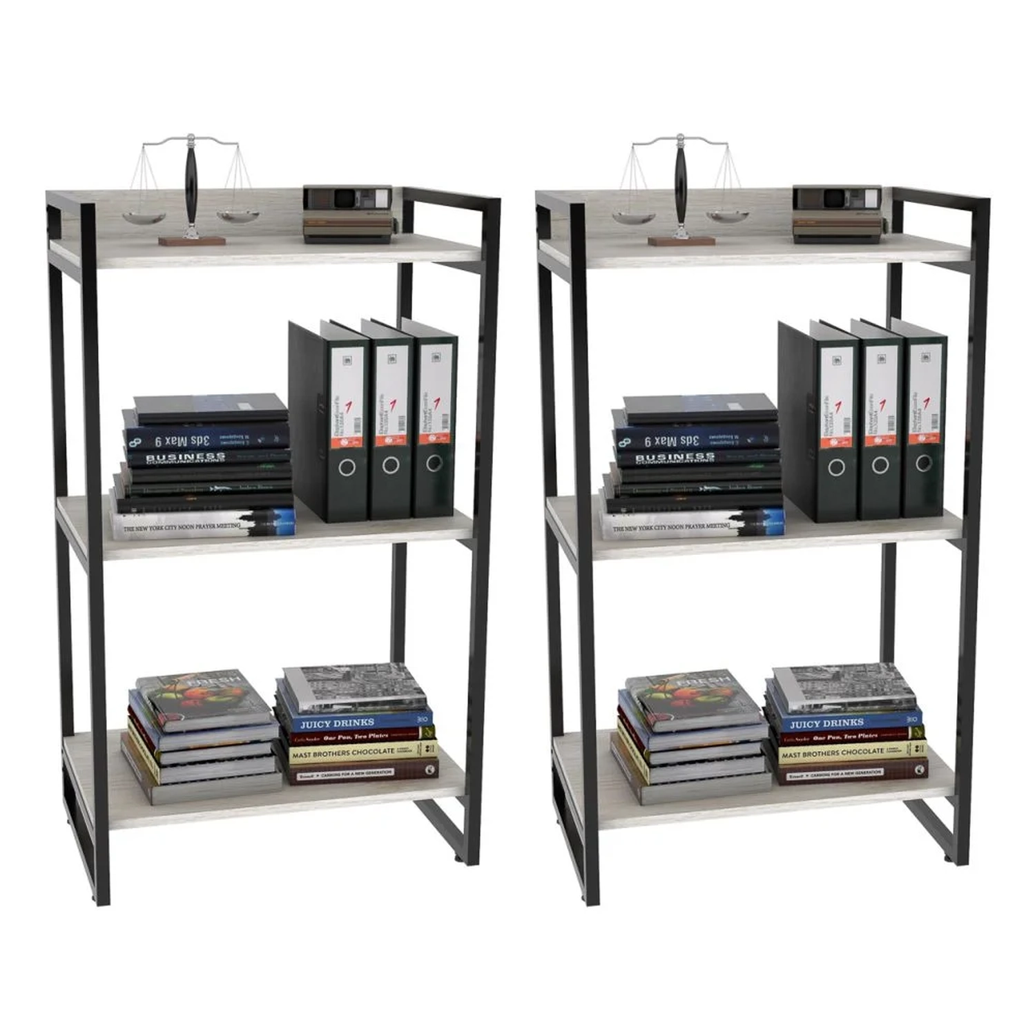 O Kit 2 Estantes Livreiro Prisma Estilo Industrial 60cm 3 Prateleiras Snow - Mpozenato, são perfeitos para dar estilo e valorizarem sua decoração garantindo praticidade. Confeccionadas em MDP de 15 mm com acabamento em BP e partes metálicas em pintura epóxi que proporcionam maior durabilidade e resistência aos produtos. Além disso, contam com design inovador com seu estilo industrial combinando os tubos de aço à madeira, trazendo um pouco do charme urbano ao seu ambiente. Ideais para expor objetos decorativos como livros. Adquira já!