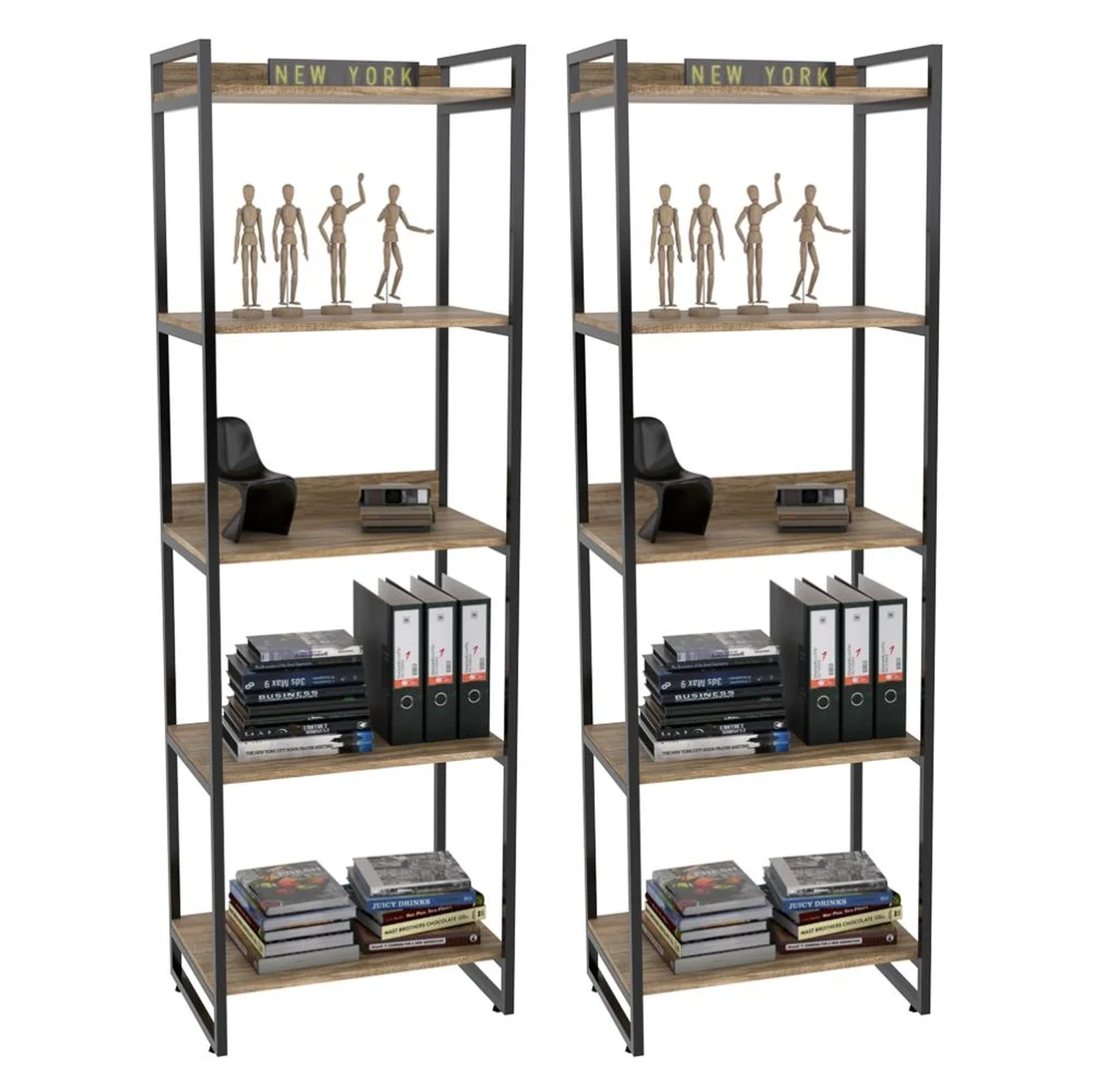 O Kit 2 Estantes Livreiro Prisma Estilo Industrial 60cm 5 Prateleiras Carvalho - Mpozenato, é òtimo para valorizar sua decoração garantindo praticidade e estilo. Confeccionada em MDP de 15 mm com acabamento em BP e partes metálicas em pintura epóxi que proporcionam maior durabilidade e resistência ao produto. Além disso, conta com design inovador com seu estilo industrial combinando os tubos de aço à madeira, trazendo um pouco do charme urbano ao seu ambiente. Ideal para expor objetos decorativos como livros. Garanta já o seu!
