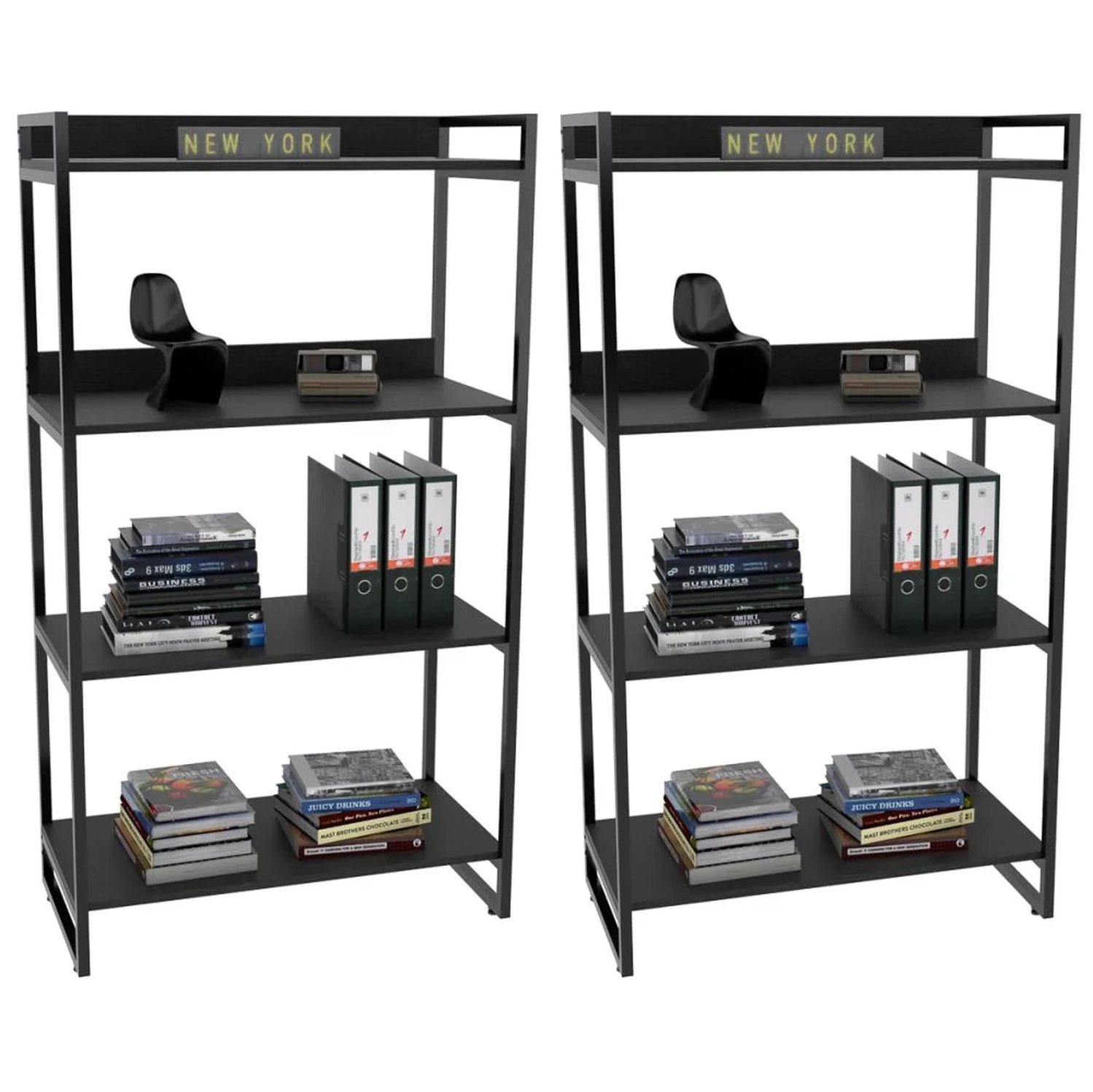O Kit 2 Estantes Livreiro Prisma Estilo Industrial 80cm 4 Prateleiras Preto Onix - Mpozenato, é excelente para valorizar sua decoração garantindo praticidade e estilo. Confeccionadas em MDP de 15 mm com acabamento em BP e partes metálicas em pintura epóxi que proporcionam maior durabilidade e resistência ao produto. Além disso, contam com design inovador com seu estilo industrial combinando os tubos de aço à madeira, trazendo um pouco do charme urbano ao seu ambiente. Ideal para expor objetos decorativos como livros. Adquira o seu Kit!