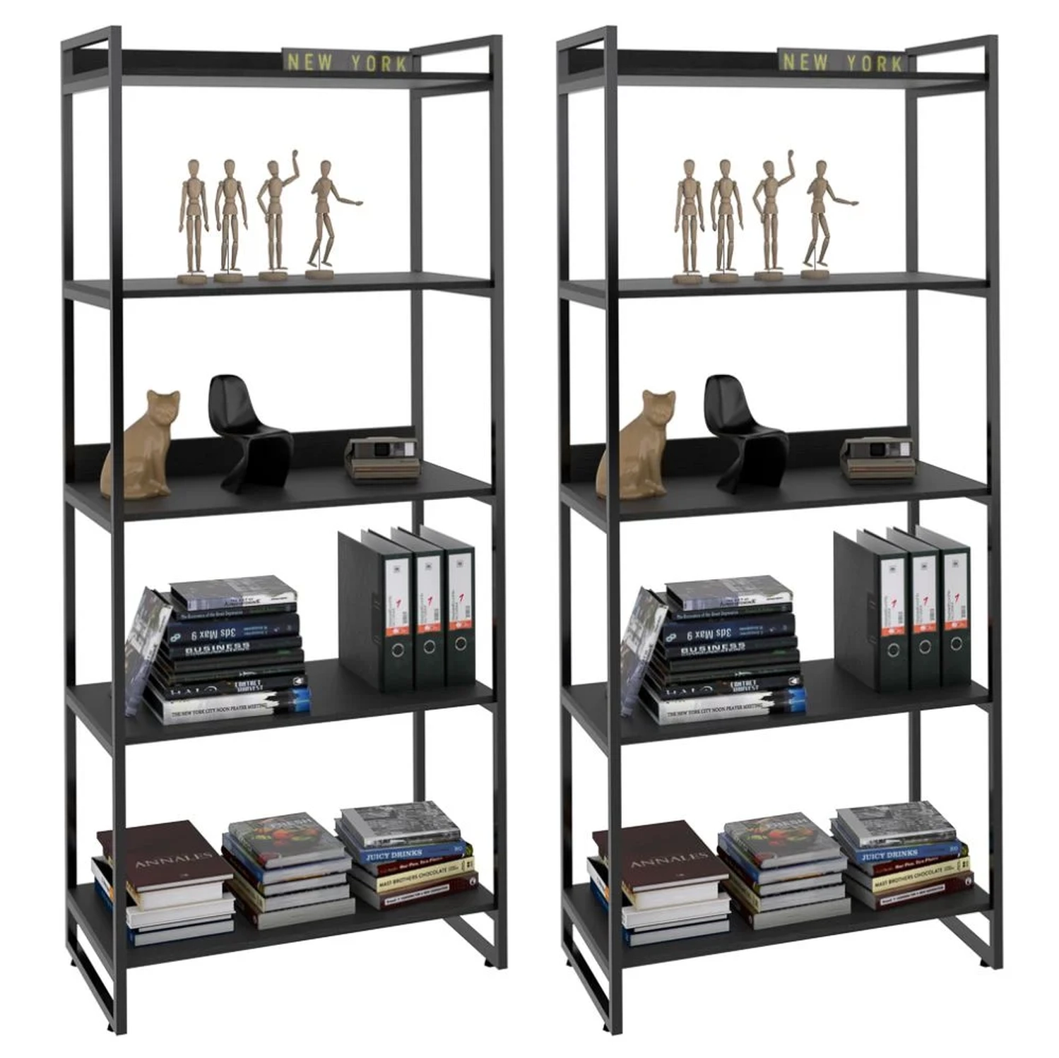 O Kit 2 Estantes Livreiro Prisma Estilo Industrial 80cm 5 Prateleiras Preto Onix - Mpozenato, vão dar um charme moderno na sua decoração garantindo praticidade e estilo. Confeccionadas em MDP de 15 mm com acabamento em BP e partes metálicas em pintura epóxi que proporcionam maior durabilidade e resistência ao produto. Além disso, contam com design inovador com seu estilo industrial combinando os tubos de aço à madeira, trazendo um pouco do charme urbano ao seu ambiente. Ideais para expor objetos decorativos como livros. Adquira já o seu Kit!