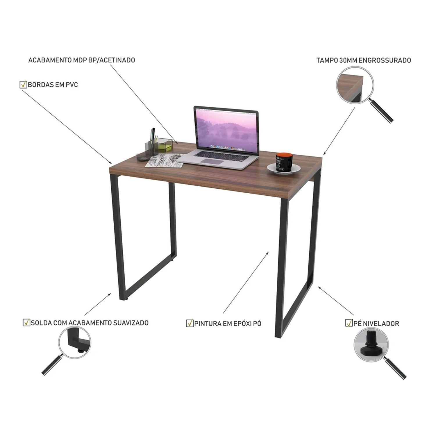O Kit 2 Mesas de Escritório Office 90cm Estilo Industrial Prisma da Mpozenato, vai valorizar a decoração do ambiente com seu estilo industrial, harmonizando o metal e os tons de madeira resultando em um acabamento rústico misturado ao moderno. Produzida em MDP com tampo engrossado de 30mm, revestimento em BP, solda com acabamento suavizado e pintura epóxi a pó que proporciona maior durabilidade e resistência ao produto. Além disso, conta com pés niveladores. Essa mesa pode ser utilizada em diversas composições com outros móveis e pode fazer parte do seu escritório, sala ou home office.