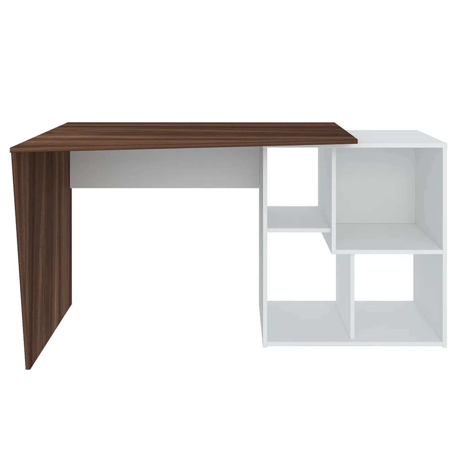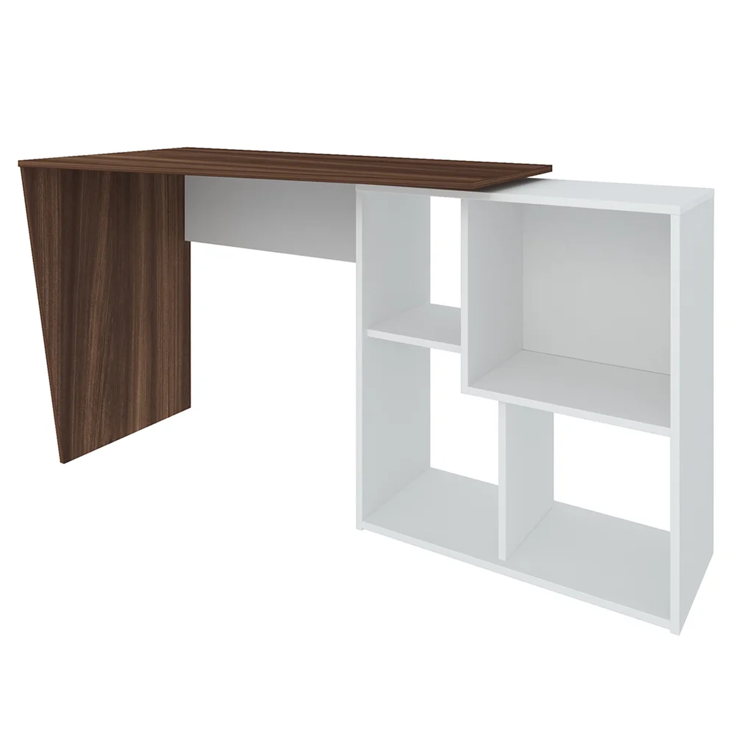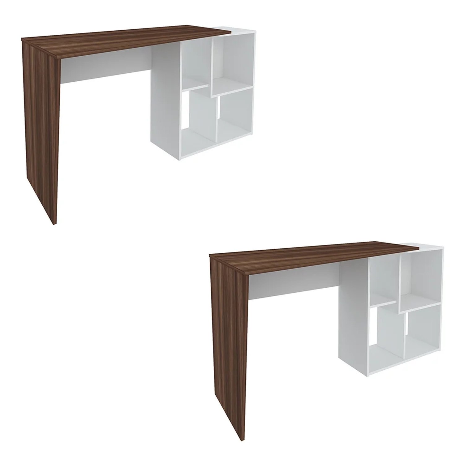 Kit 2 Mesas Escrivaninha 2 em 1 com Nichos Arbo A06 Ipê/Branco - Mpozenato 122721