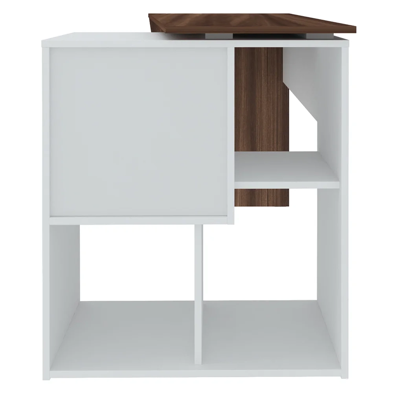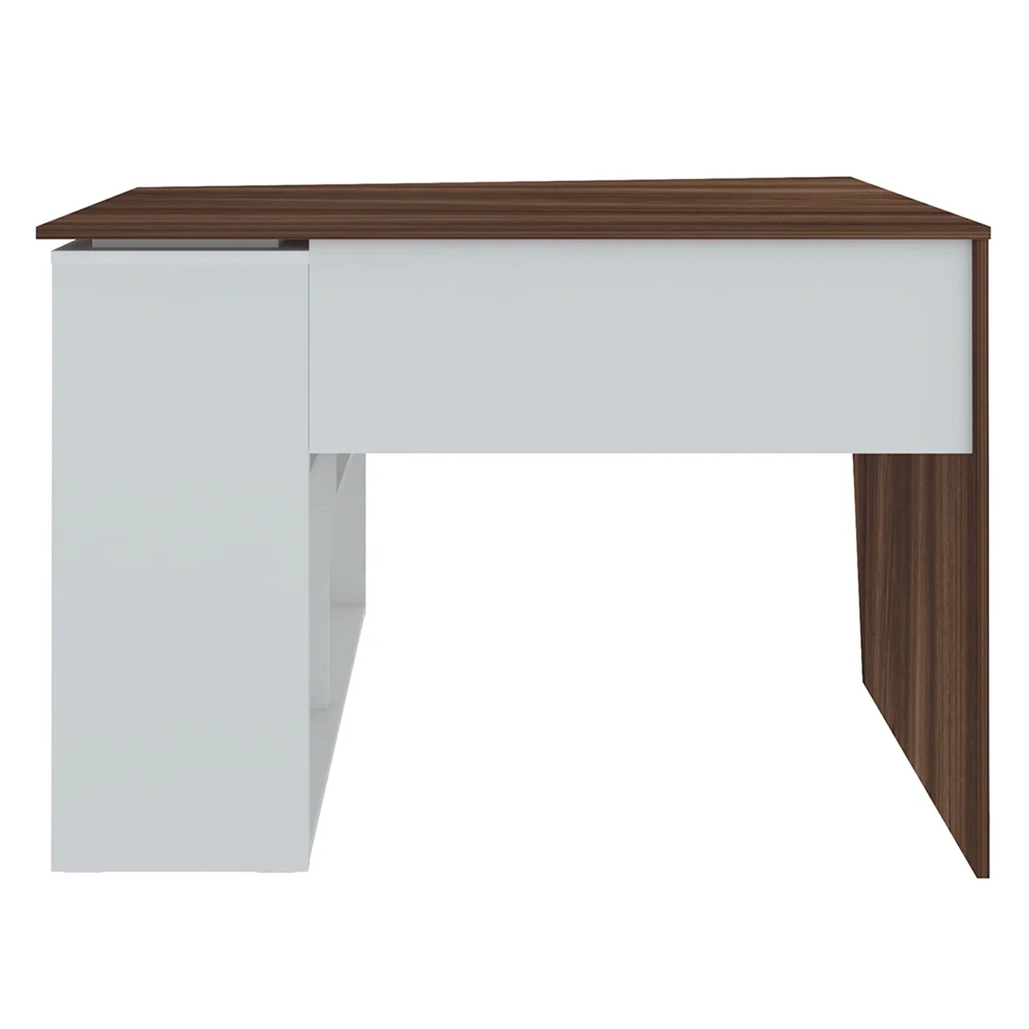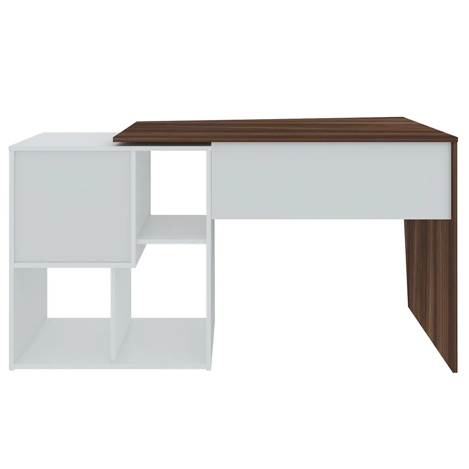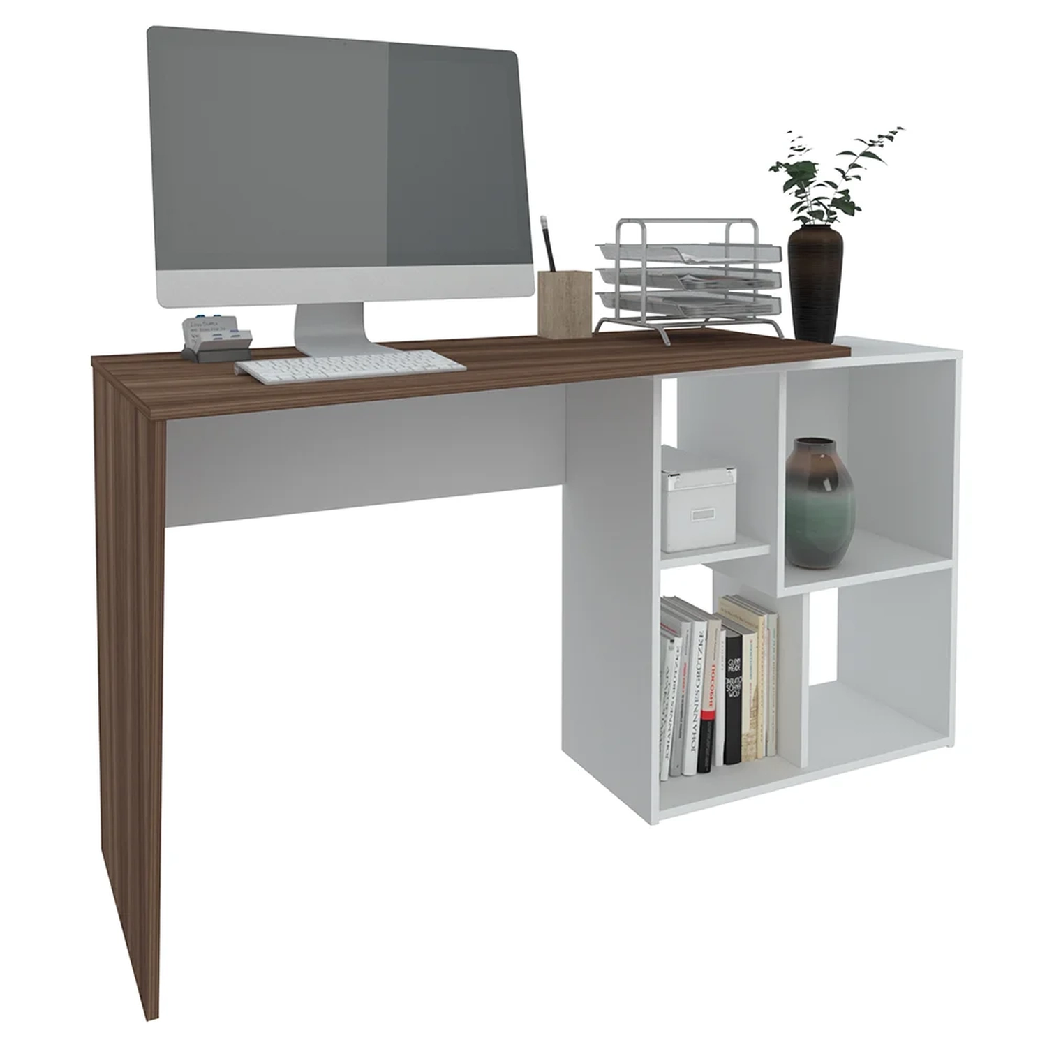 Kit 2 Mesas Escrivaninha 2 em 1 com Nichos Arbo A06 Ipê/Branco - Mpozenato 122721