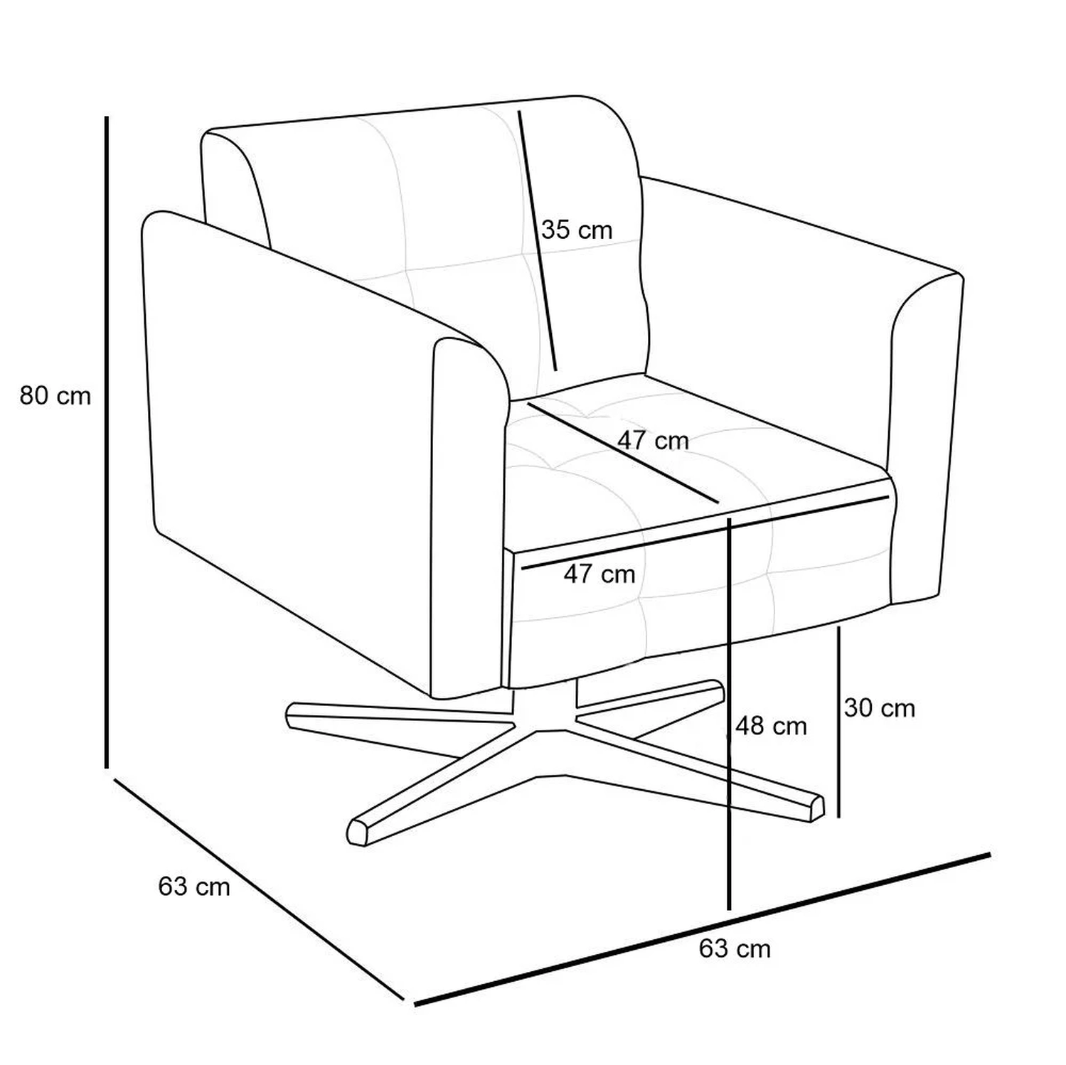Altura do assento ao chão: 48 cm.