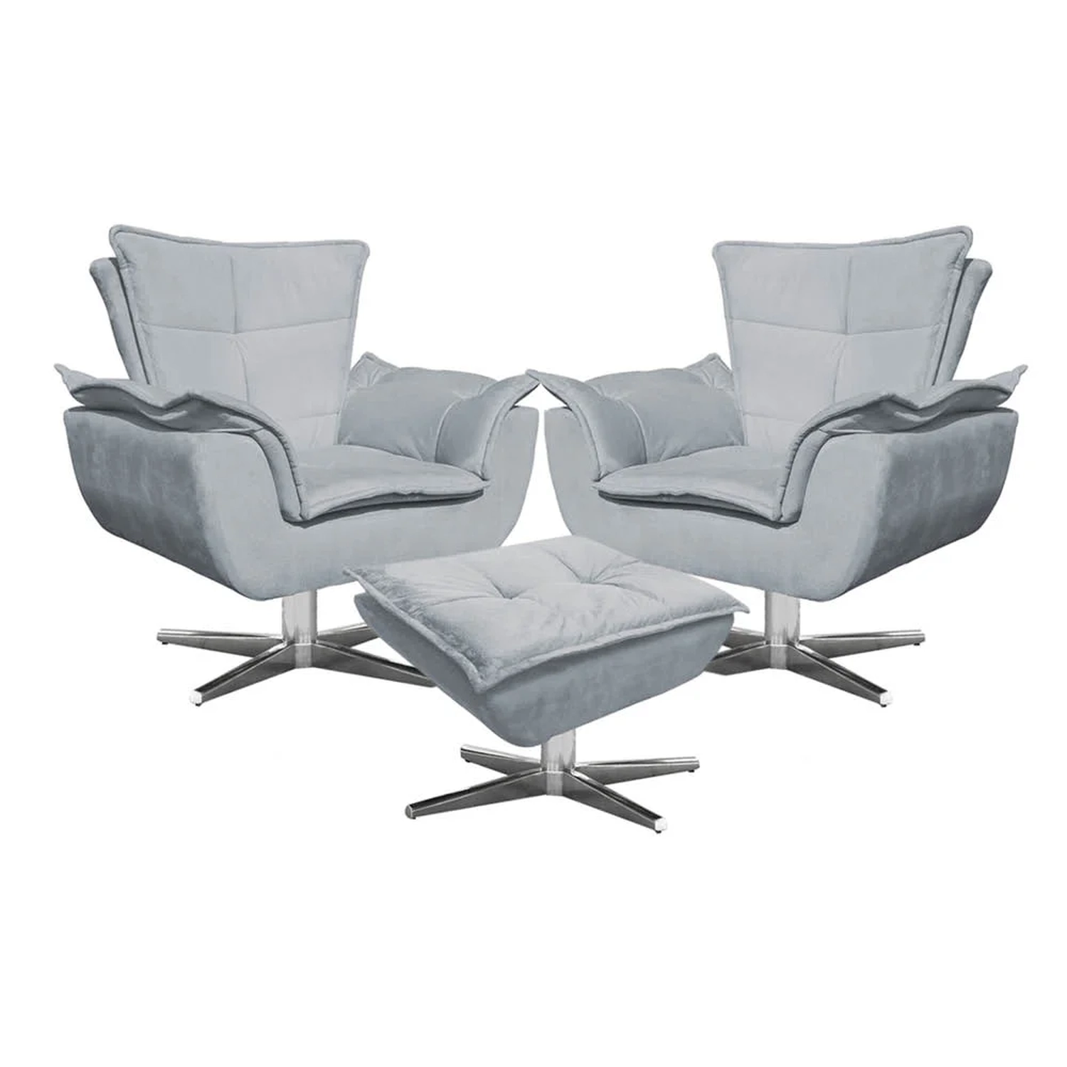 Kit 2 Poltronas Decorativas Base Giratória Cromada com Puff Opla Suede Cinza - Ibiza 660044112