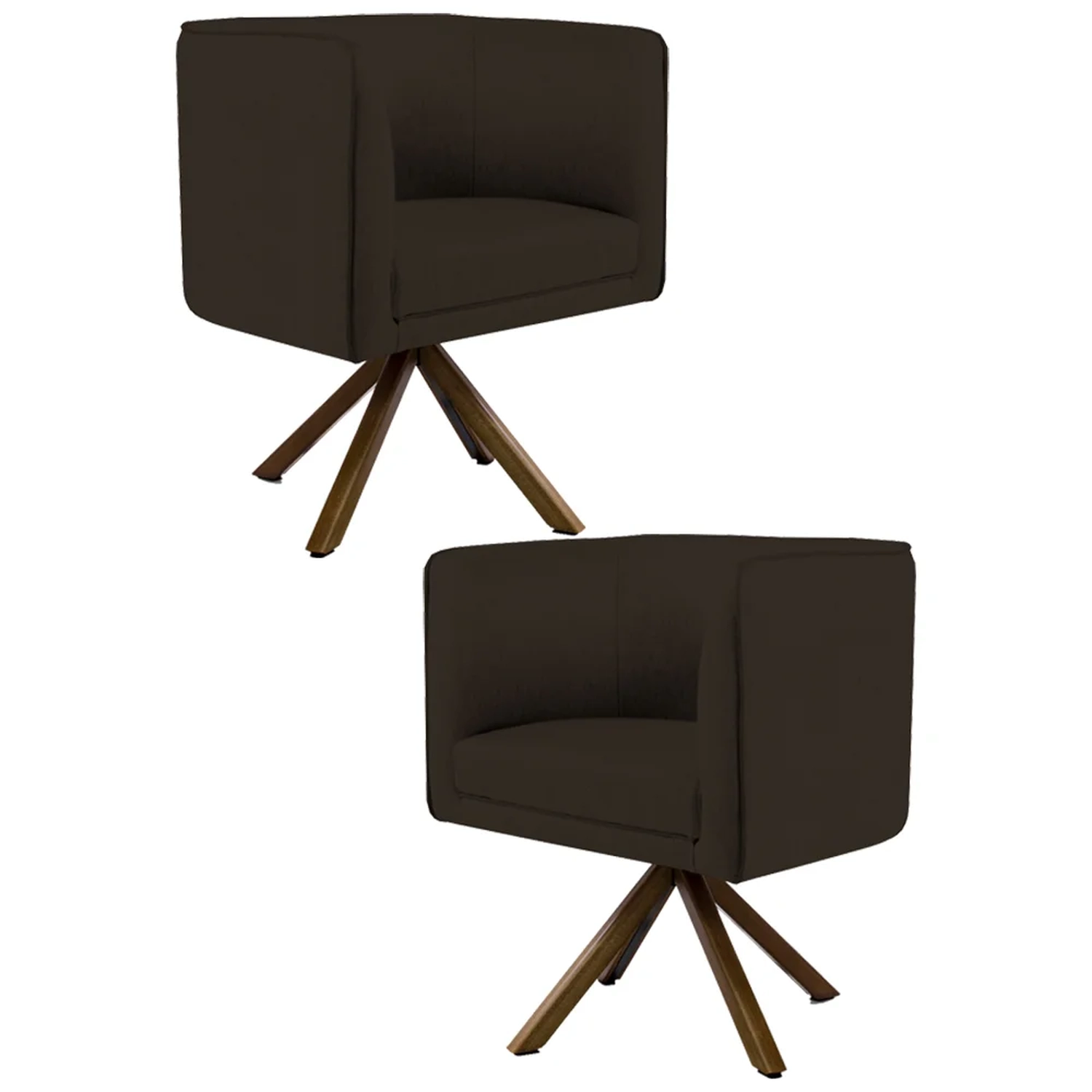 Kit 2 Poltronas Decorativas Base Giromad Madeira Betina C-34 Corano Marrom - Domi 660042889