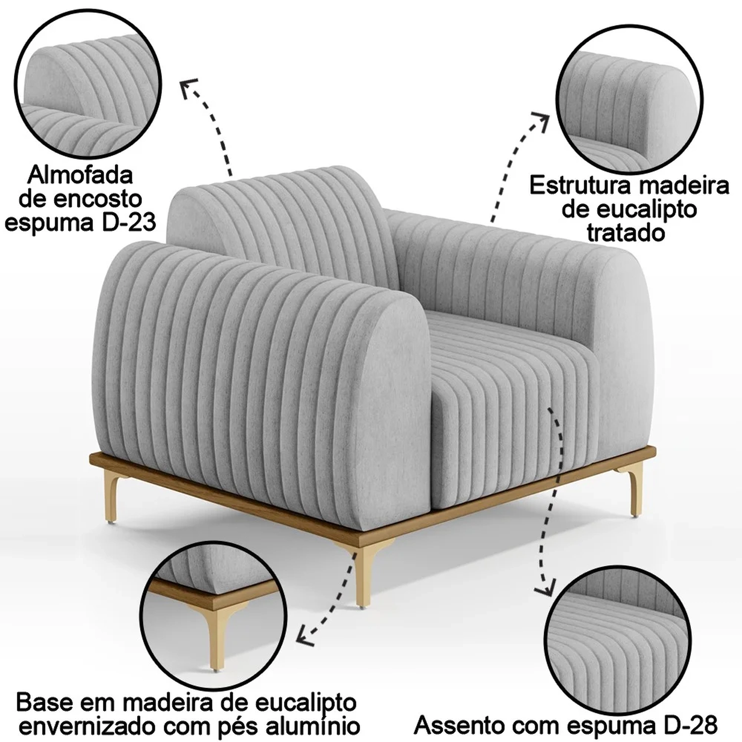 Material dos Pés:Madeira de eucalipto envernizada com pés em alumínio.