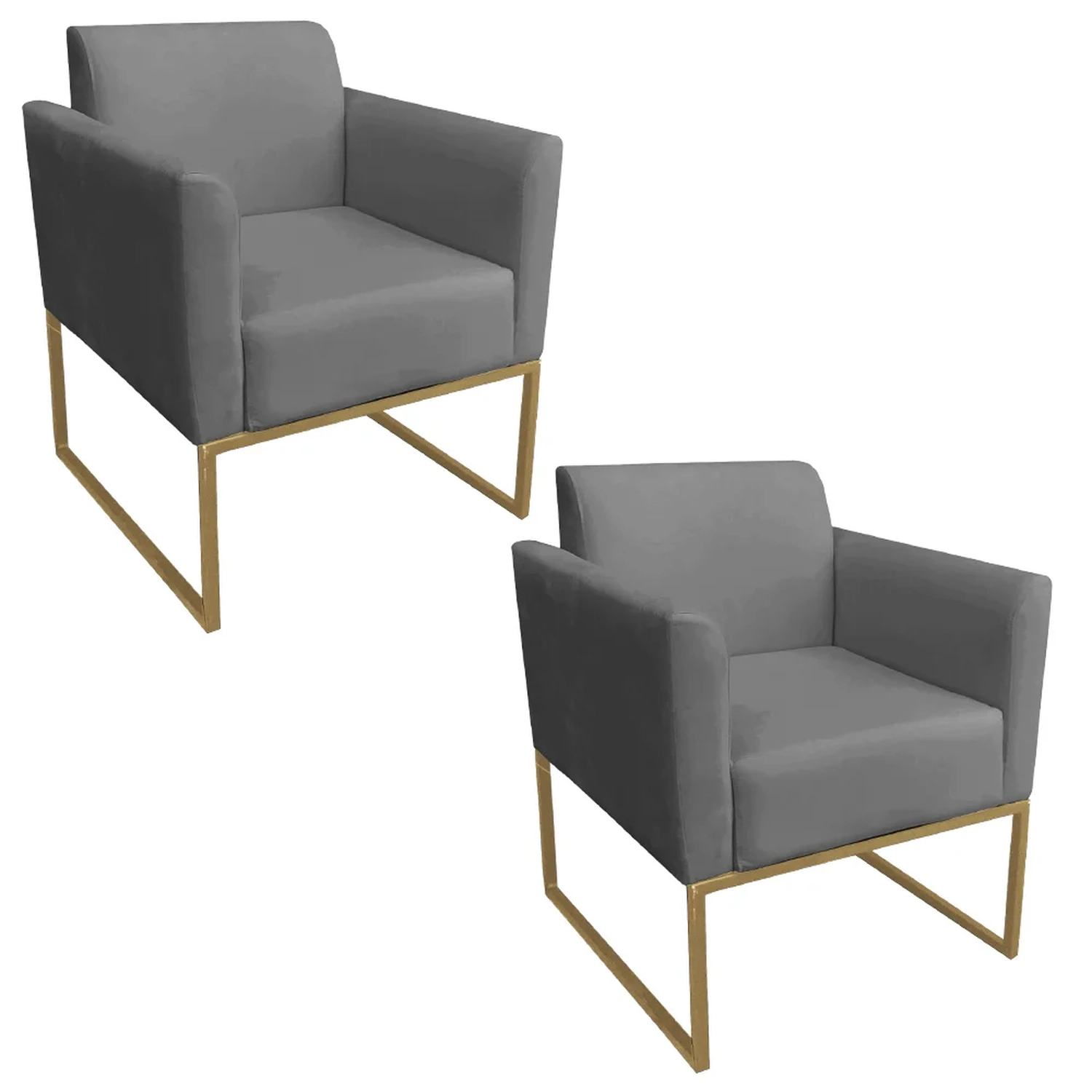 Kit 2 Poltronas Decorativas Base Industrial Dourada Maressa S08 Suede Grafite - Ibiza 660043847
