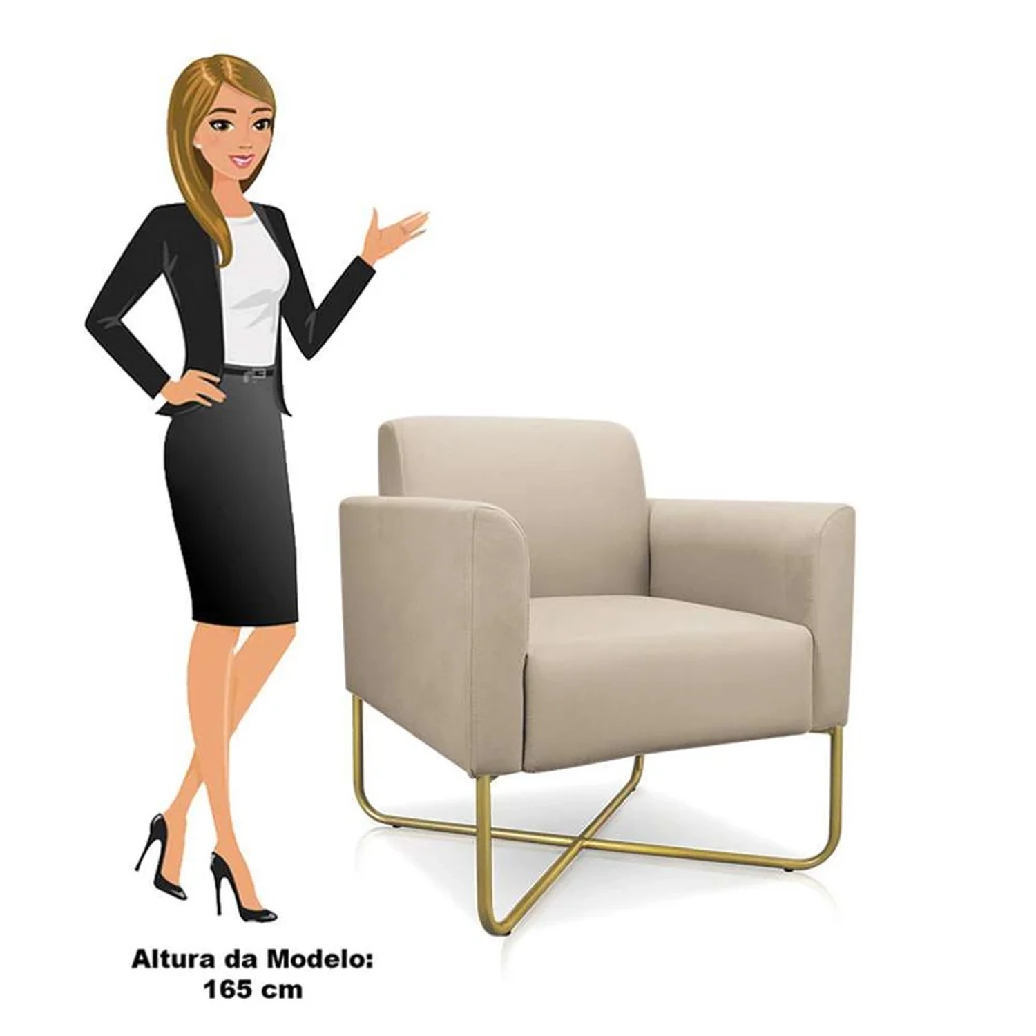 Altura do chão ao braço: 61 cm.
