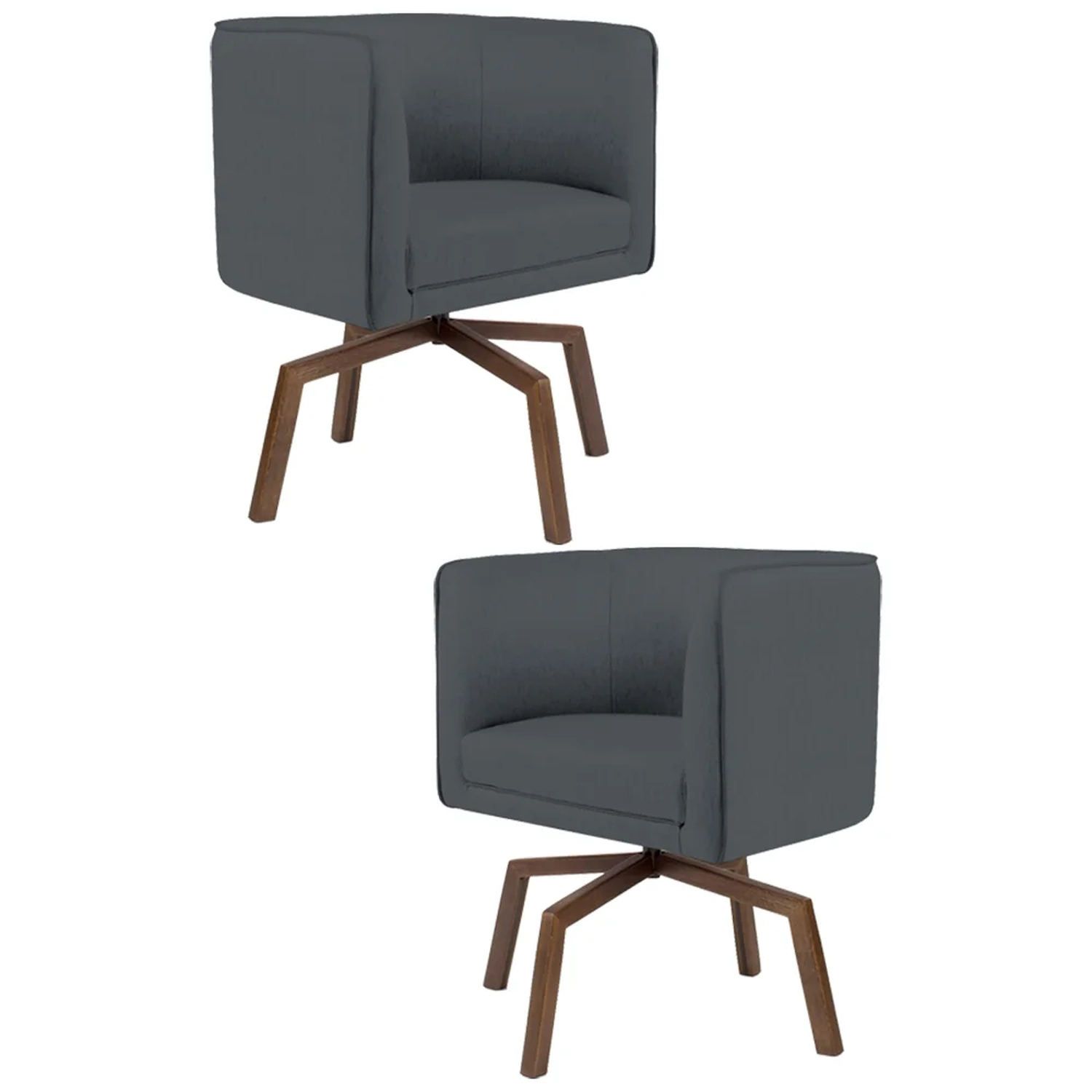 Kit 2 Poltronas Decorativas Base Ka Madeira Betina C-03 Corano Cinza - Domi 660042872