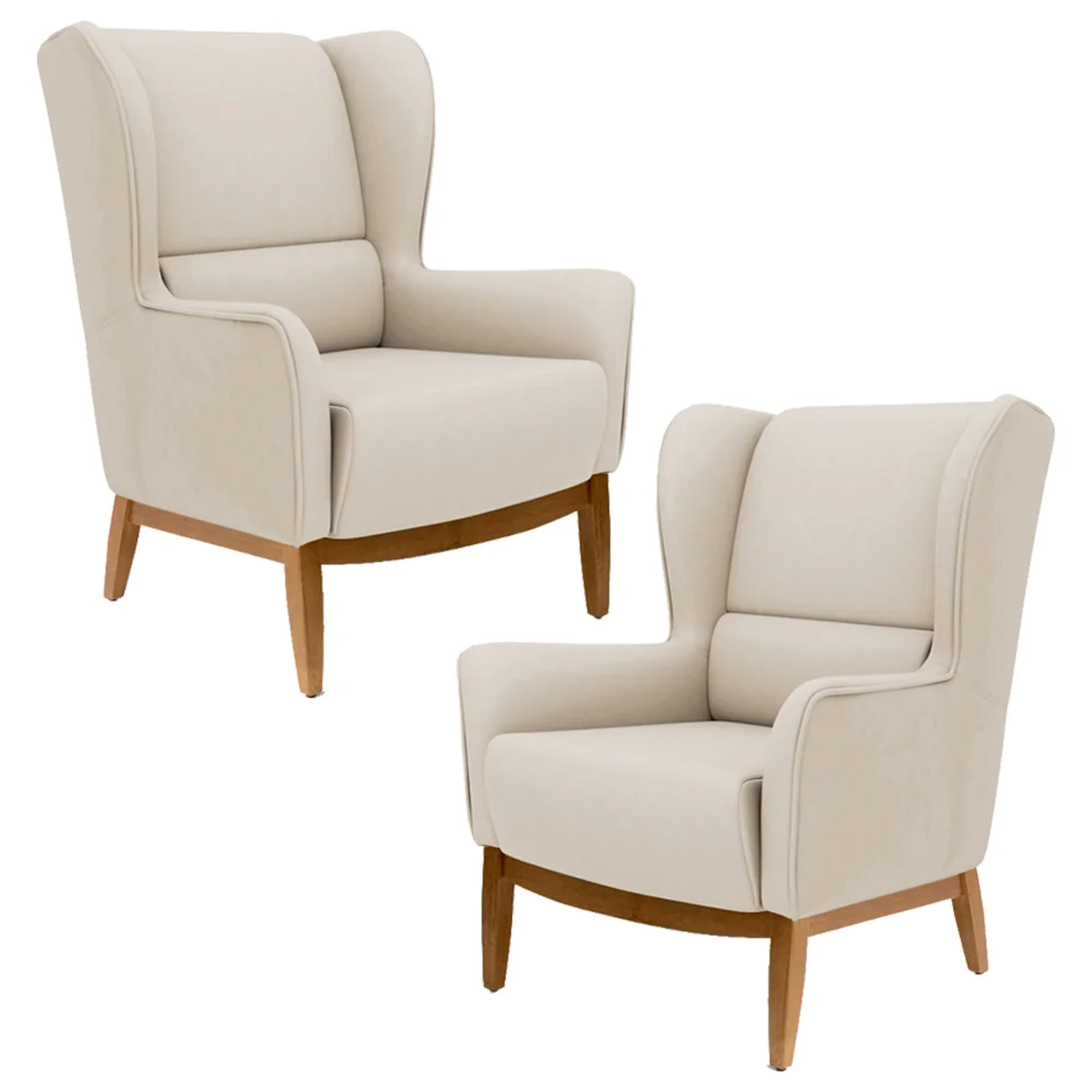 Kit 2 Poltronas Decorativas Base Manu Madeira Milena C-309 Veludo Bege - Domi 660043361