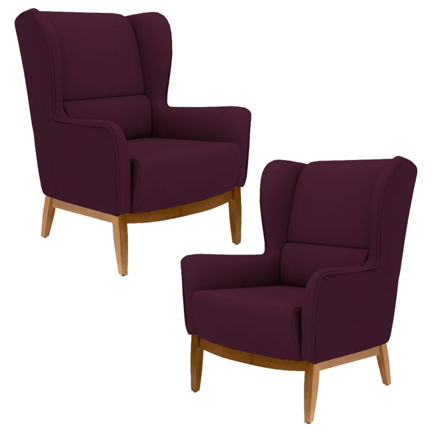 Kit 2 Poltronas Decorativas Base Manu Madeira Milena Veludo C-292 Uva - Domi 660043356