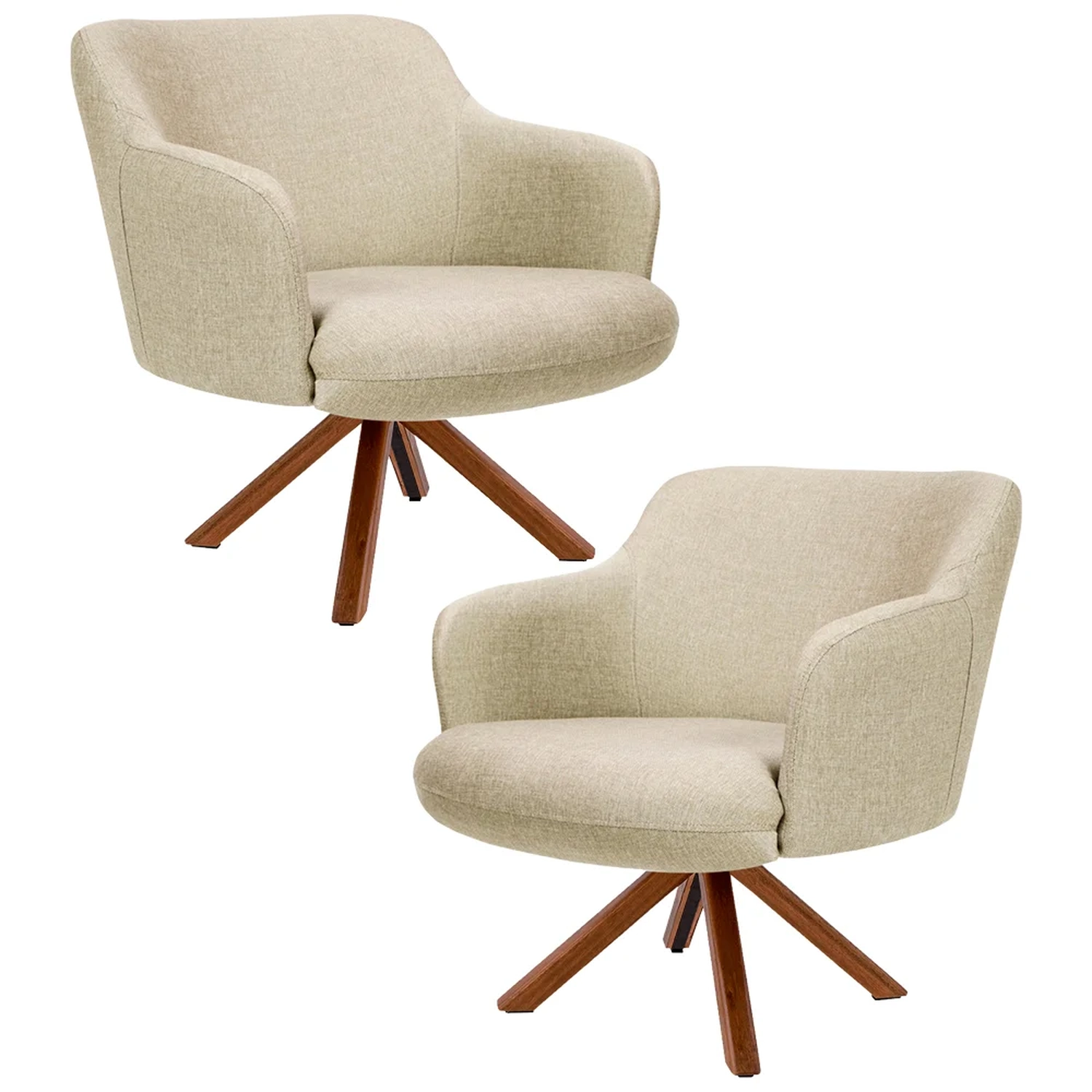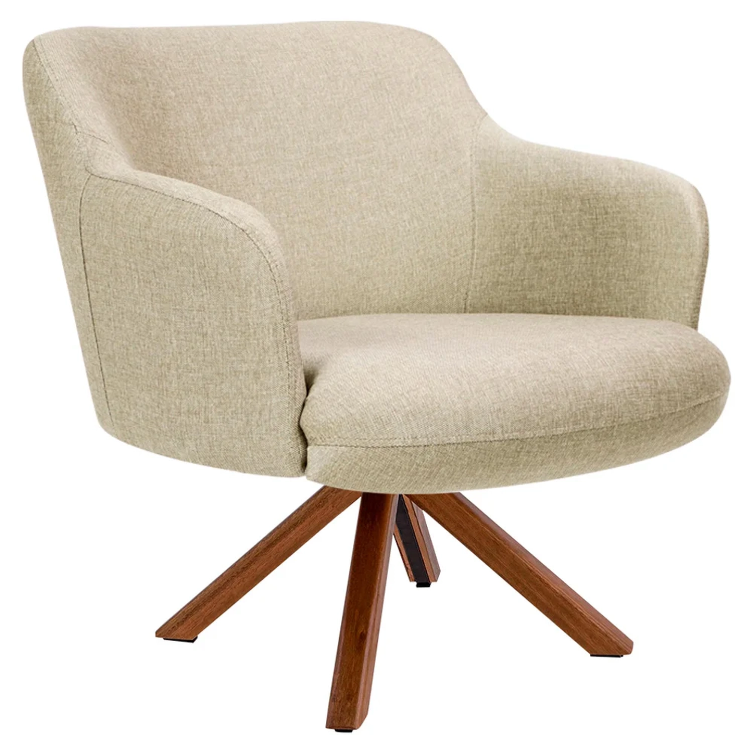 Kit 2 Poltronas Decorativas Giratórias Base Giromad Madeira Jade C-129 Linho Bege Escuro - Domi 660042177