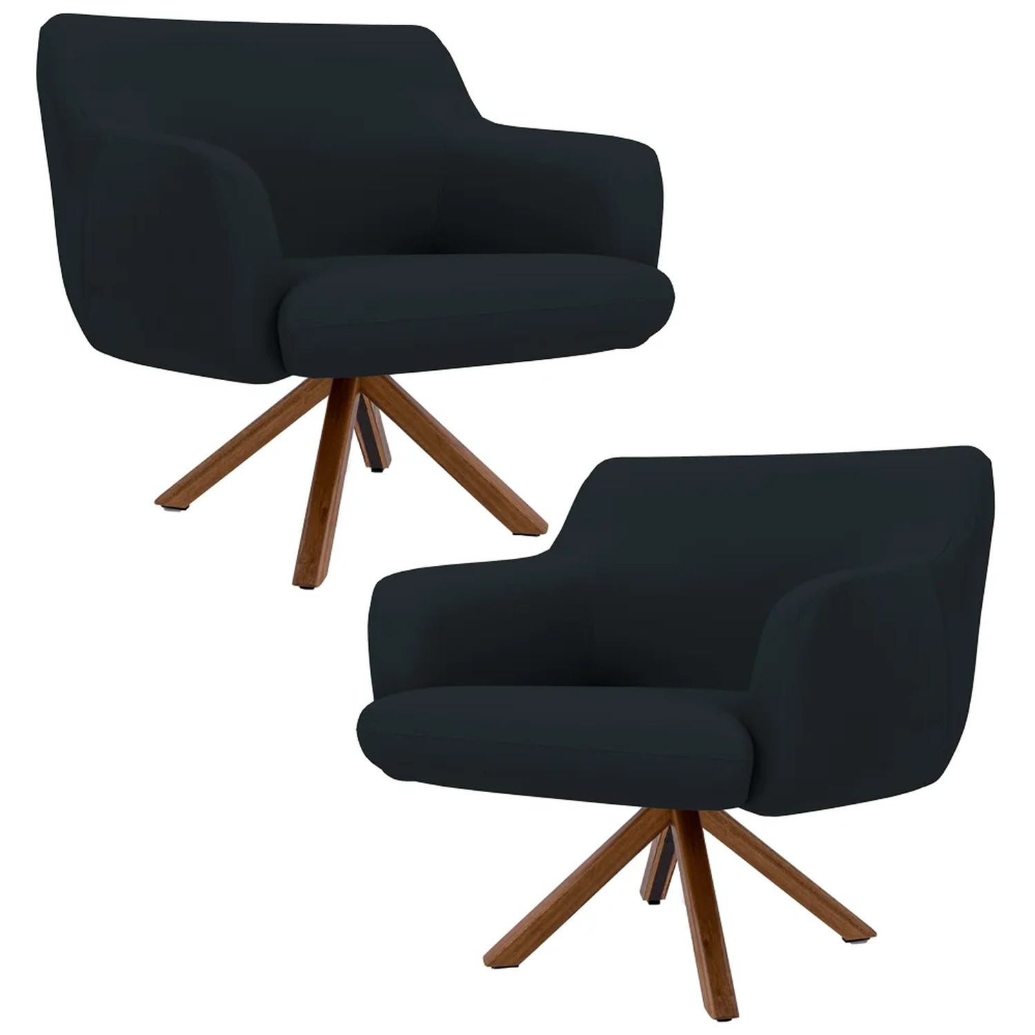 Kit 2 Poltronas Decorativas Giratórias Base Giromad Madeira Jade Veludo C-300 Preto - Domi 660042160
