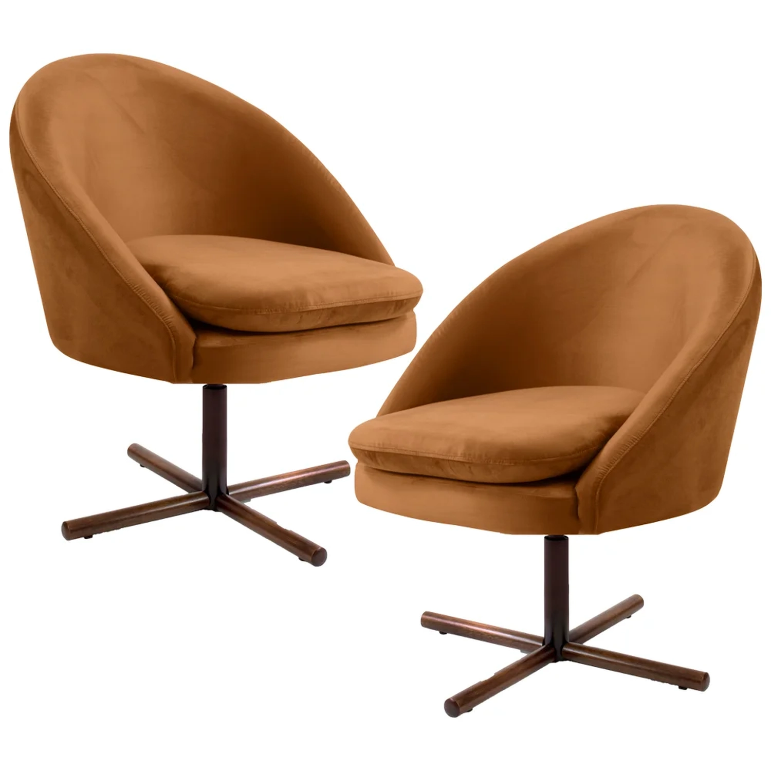 Kit 2 Poltronas Decorativas Giratórias Base Xis Madeira Rafa C-262 Veludo Telha - Domi 660042196