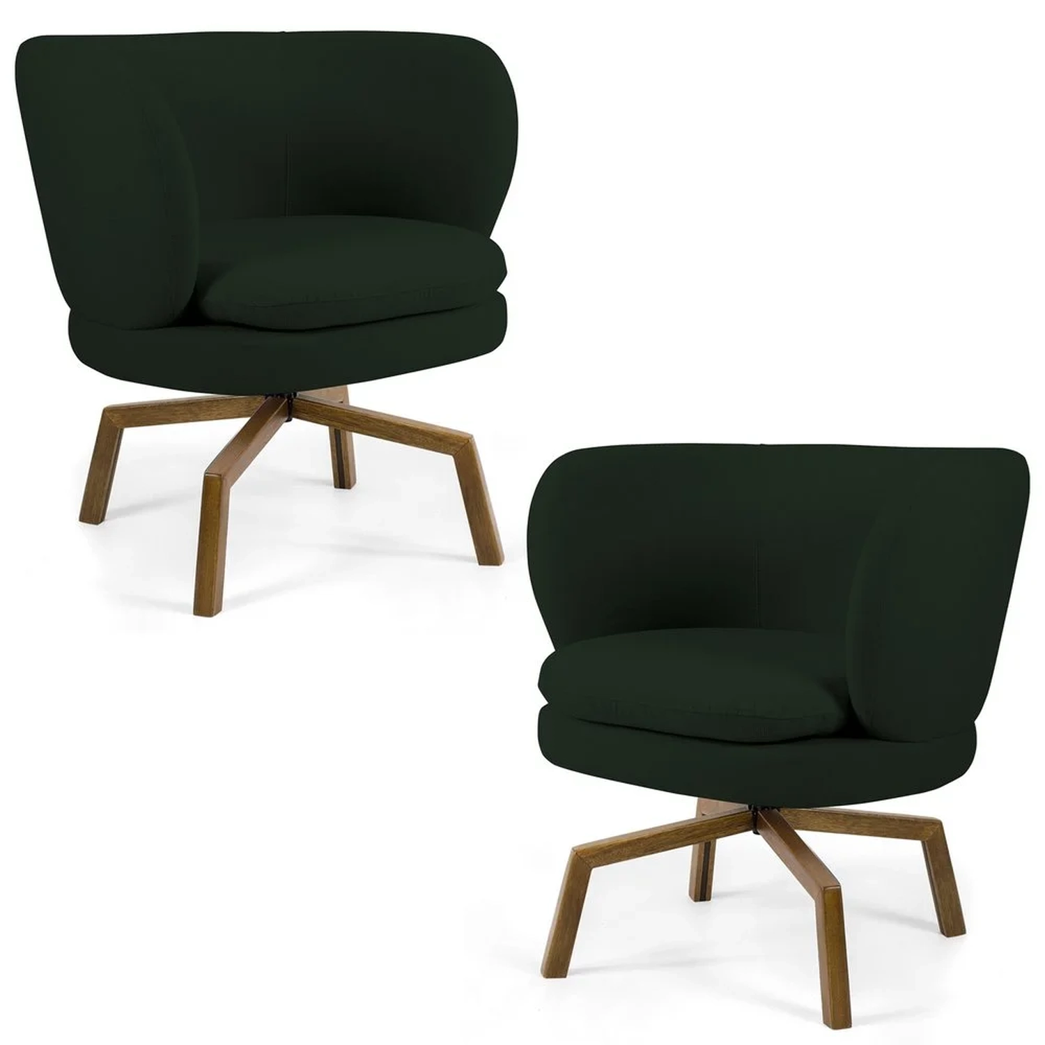 Kit 2 Poltronas Decorativas Melissa Base Ka Giratória Castanho Veludo C-303 Verde Musgo - Domi 660043552