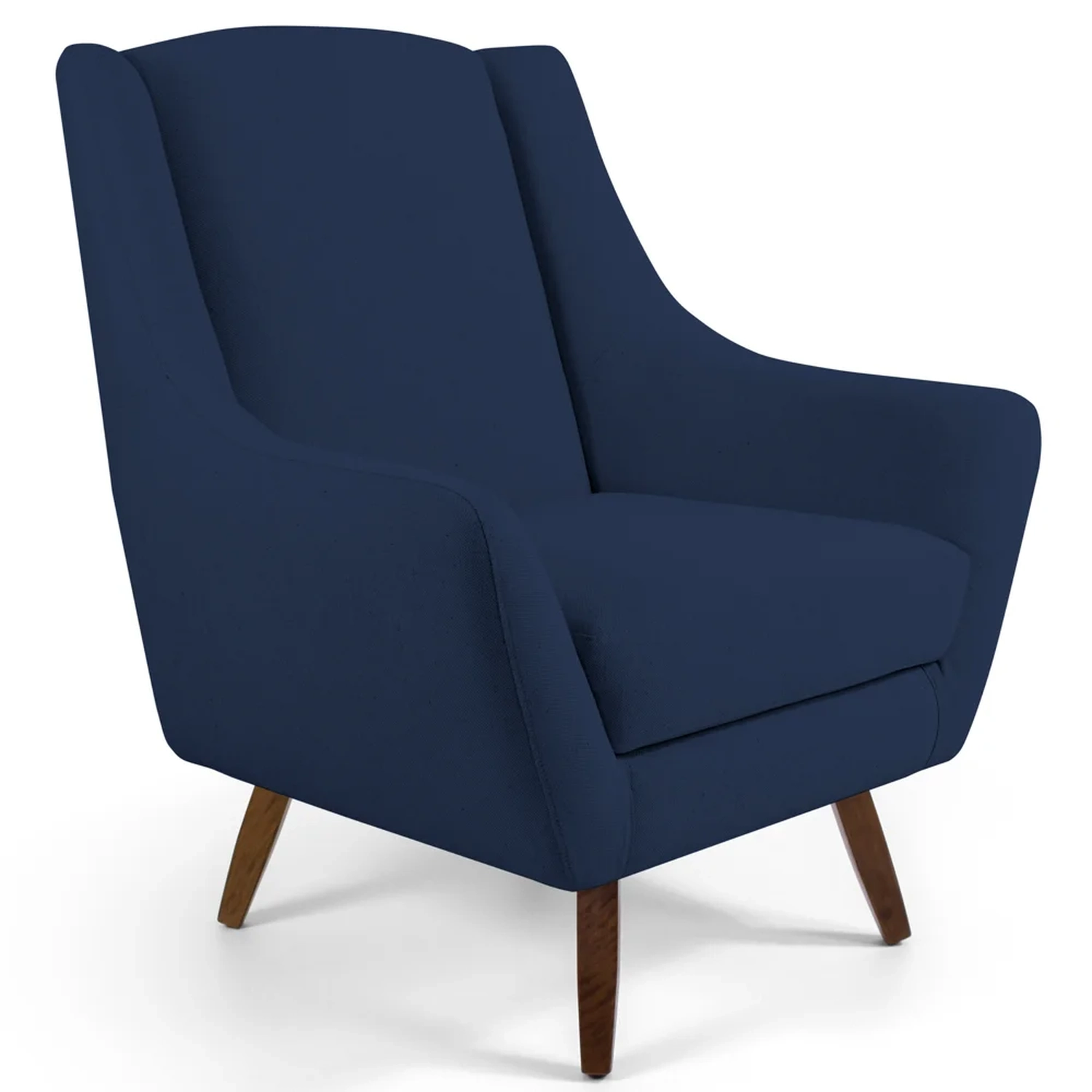 Kit 2 Poltronas Decorativas Pés Palito Madeira Juliet Veludo C-304 Azul Marinho - Domi 660043683