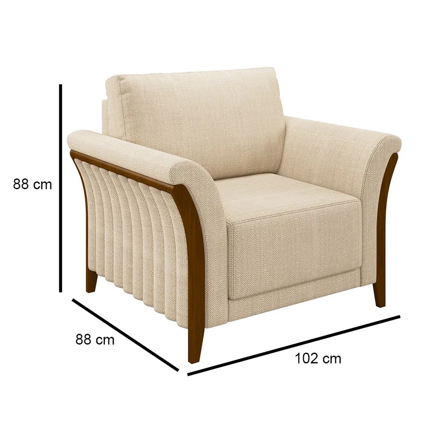A combinação do desenho slim com os detalhes dos braços curvos e os pés em madeira resulta em uma poltrona para sala atemporal, que combina tanto com a decoração clássica quanto contemporânea. Mas, além dos atributos estéticos, a Poltrona Roya também é a tradução de conforto e bem-estar, sem contar a versatilidade, já que pode ser disposta em vários ambientes, desde a sala de estar, ao quarto, recepção ou escritório.